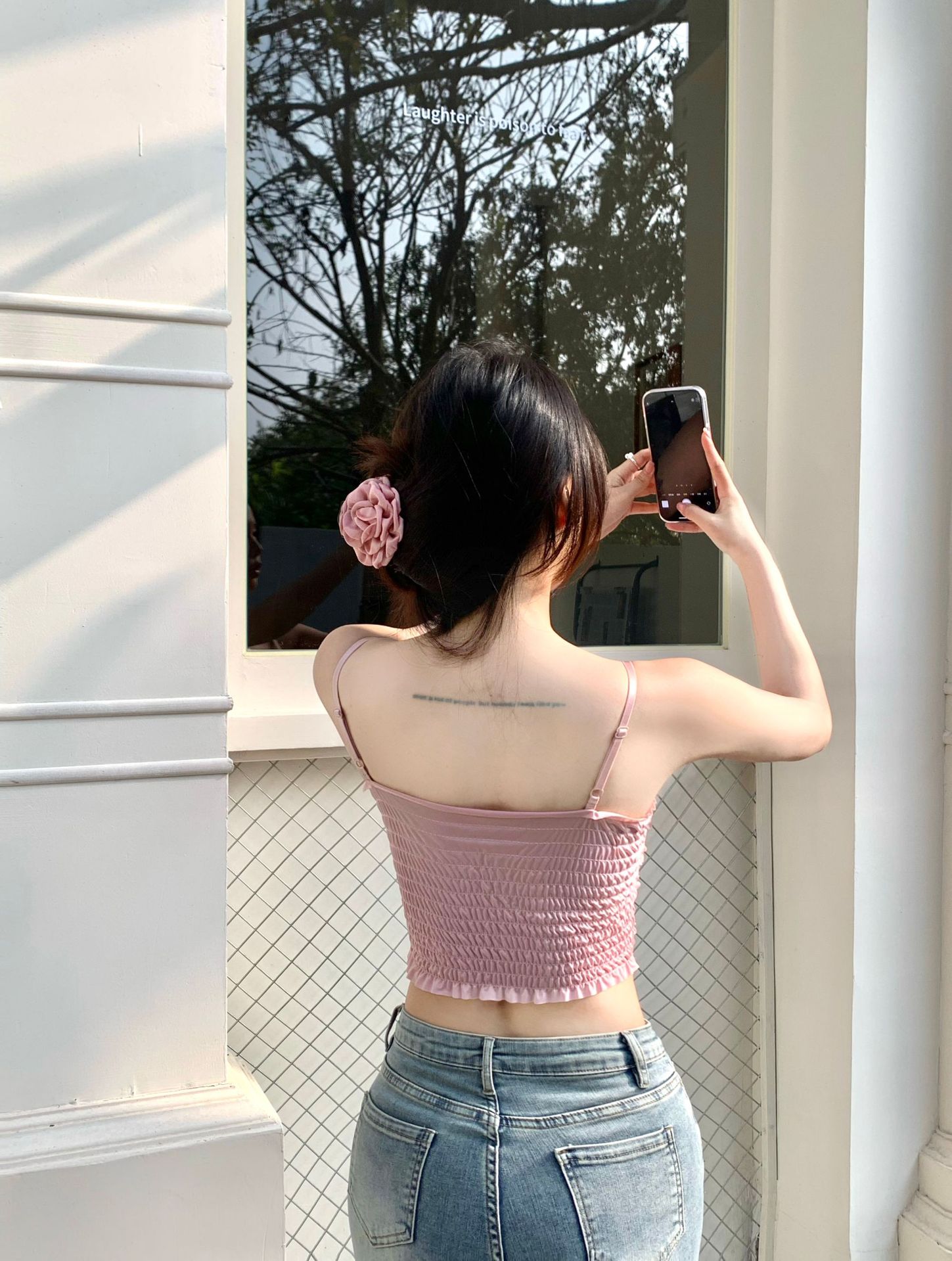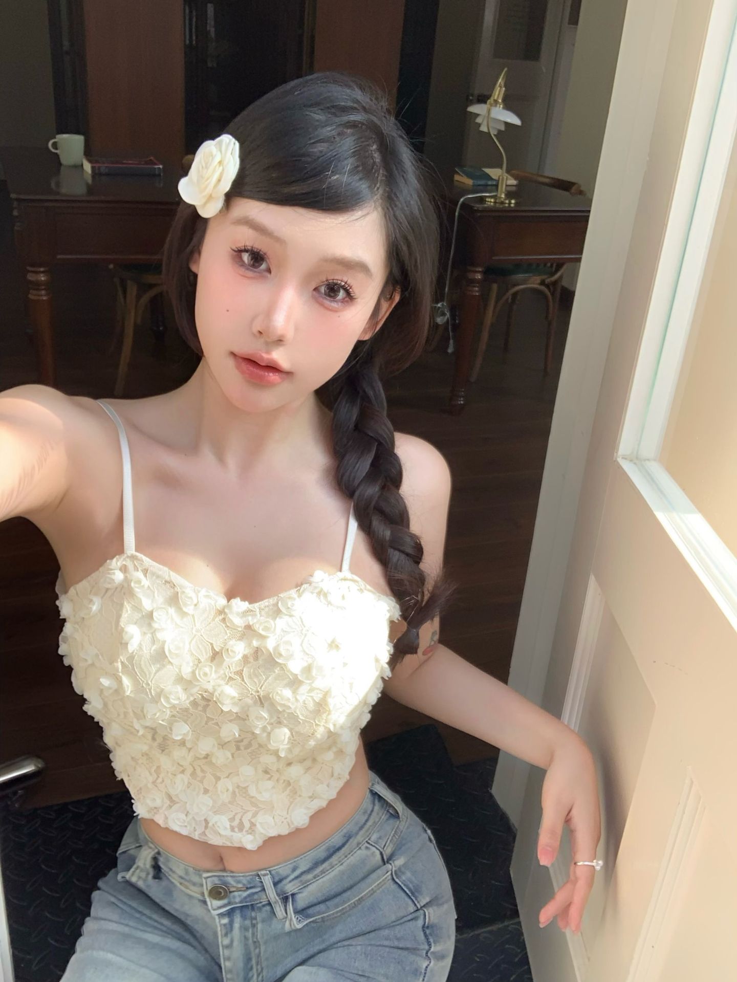 3 차원 꽃 민소매 끈이없는 조끼 여성 가을 슬림 핏 달콤하고 뜨거운 가슴 포장 디자인 백리스 짧은 아름다운 탑스토어 가기
