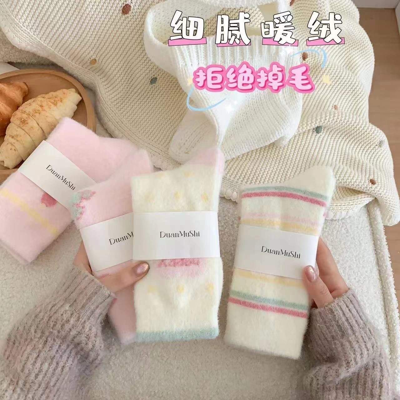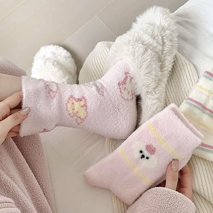 가을과 겨울 털이 두꺼운 귀여운 수면복 소녀 집 따뜻한 튜브 두꺼운 겨울 수면 양말스토어 가기