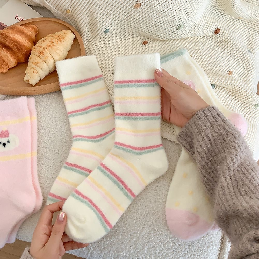 가을과 겨울 털이 두꺼운 귀여운 수면복 소녀 집 따뜻한 튜브 두꺼운 겨울 수면 양말