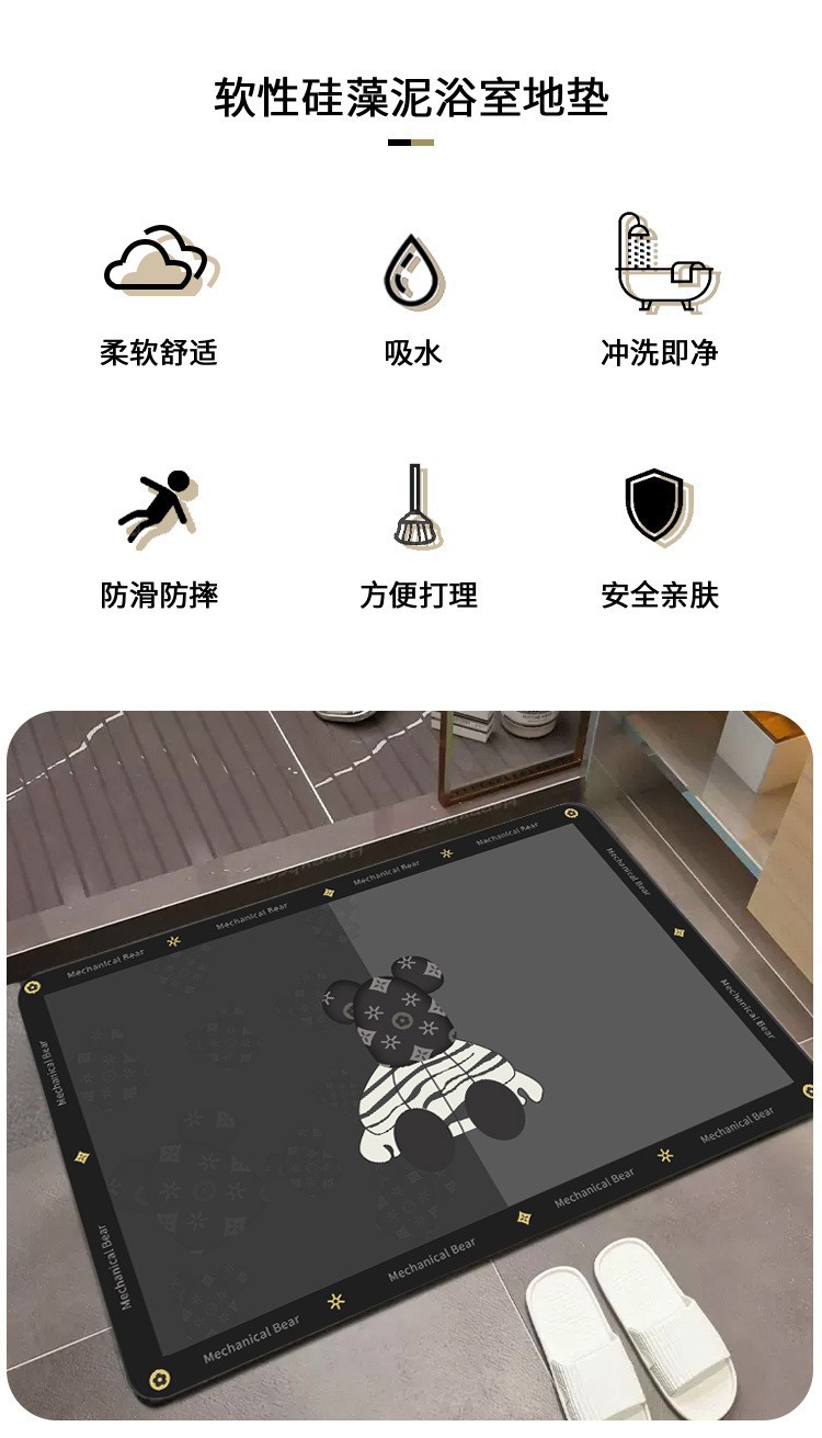 Brute Bear 소프트 디 아톰 진흙 흡수성 매트 욕실 화장실 홈 미끄럼 방지 발 매트 화장실 카펫