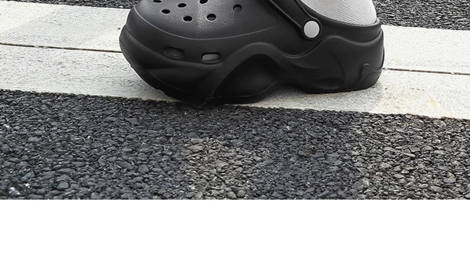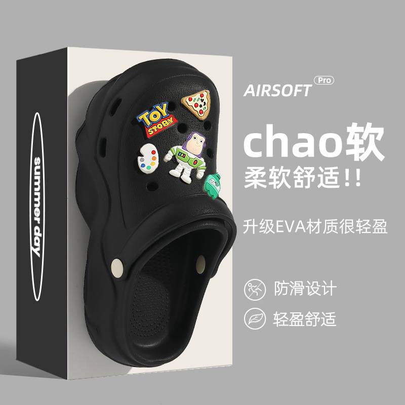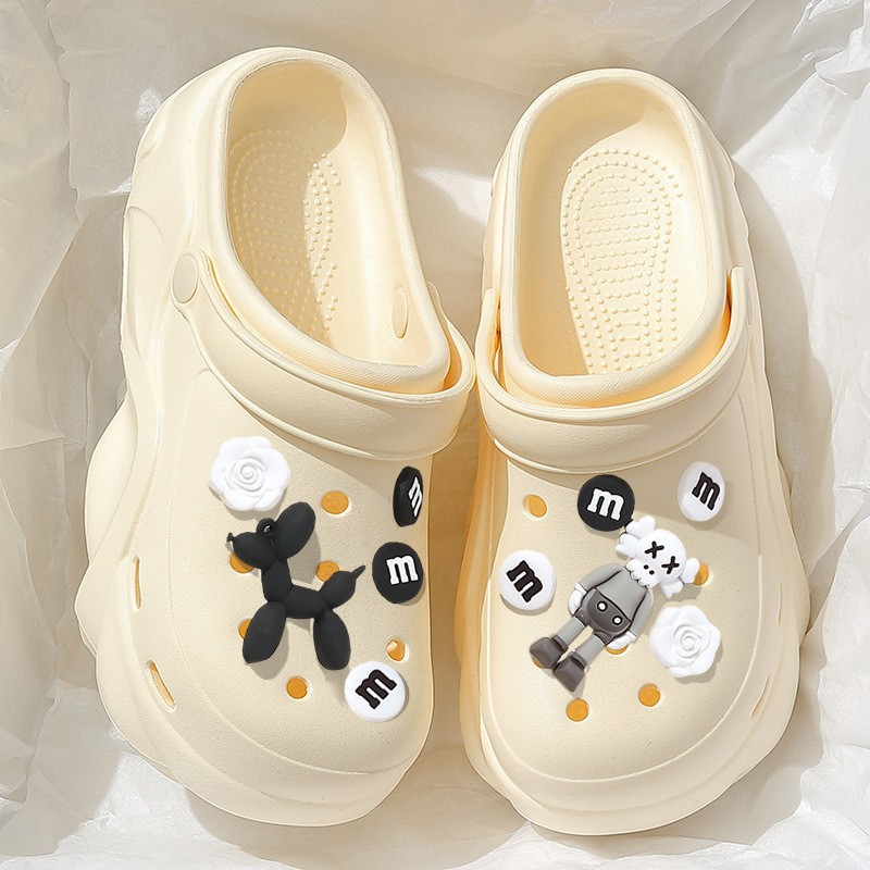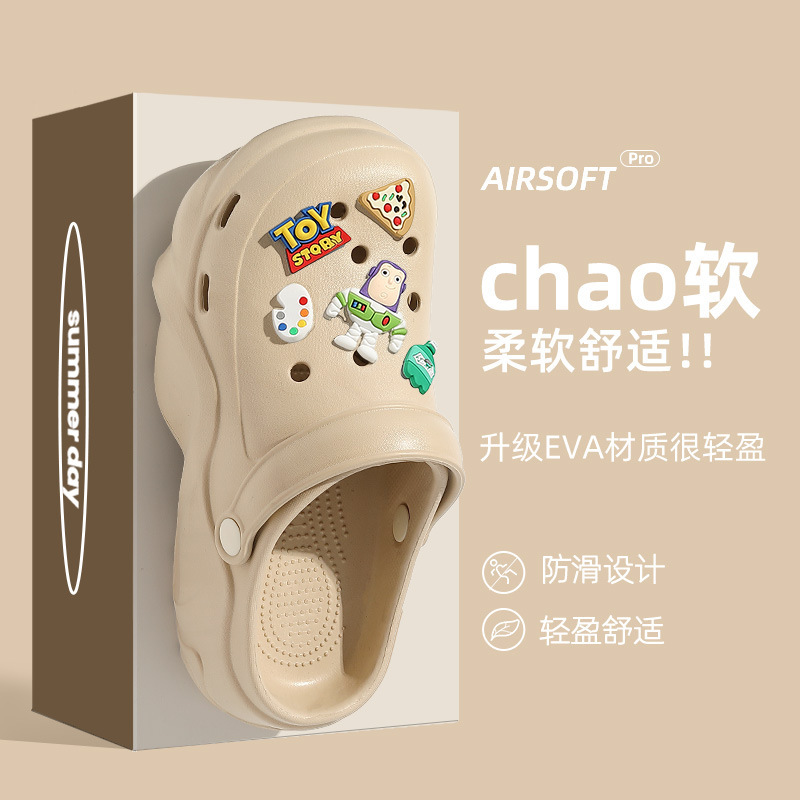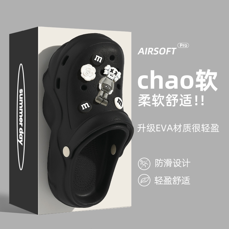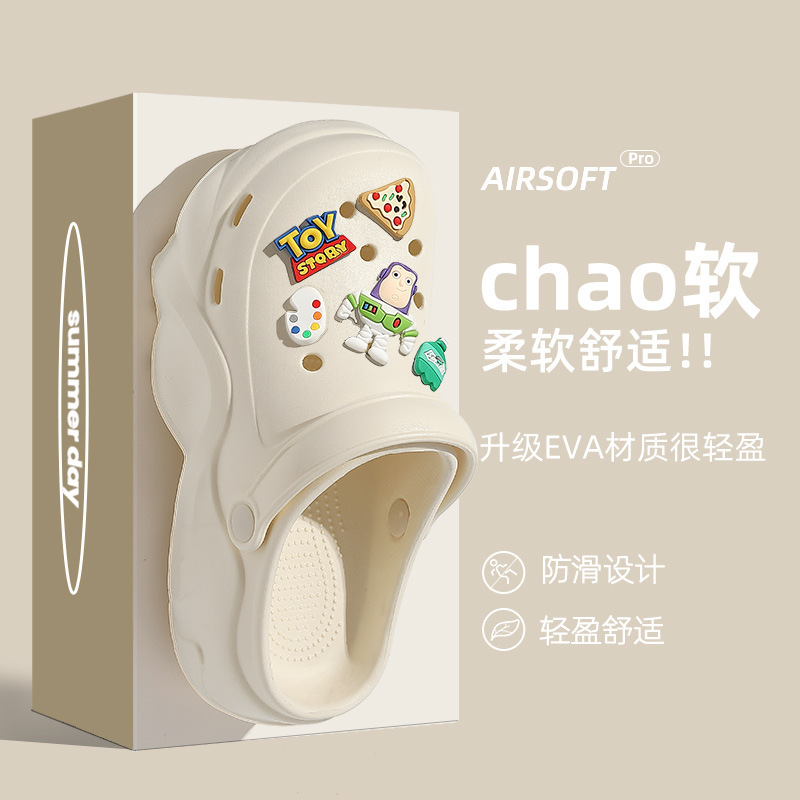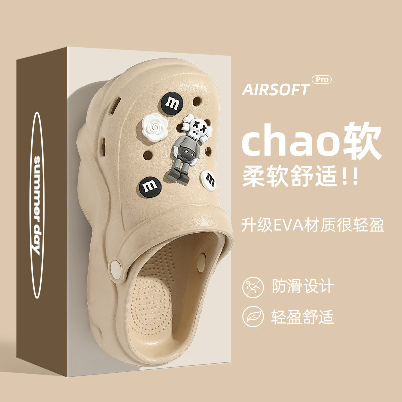 2024 새로운 스타일의 똥 느낌 두꺼운 밑창 구멍 신발 여성용 여름 야외 해변 미끄럼 방지 발가락으로 덮인 슬리퍼