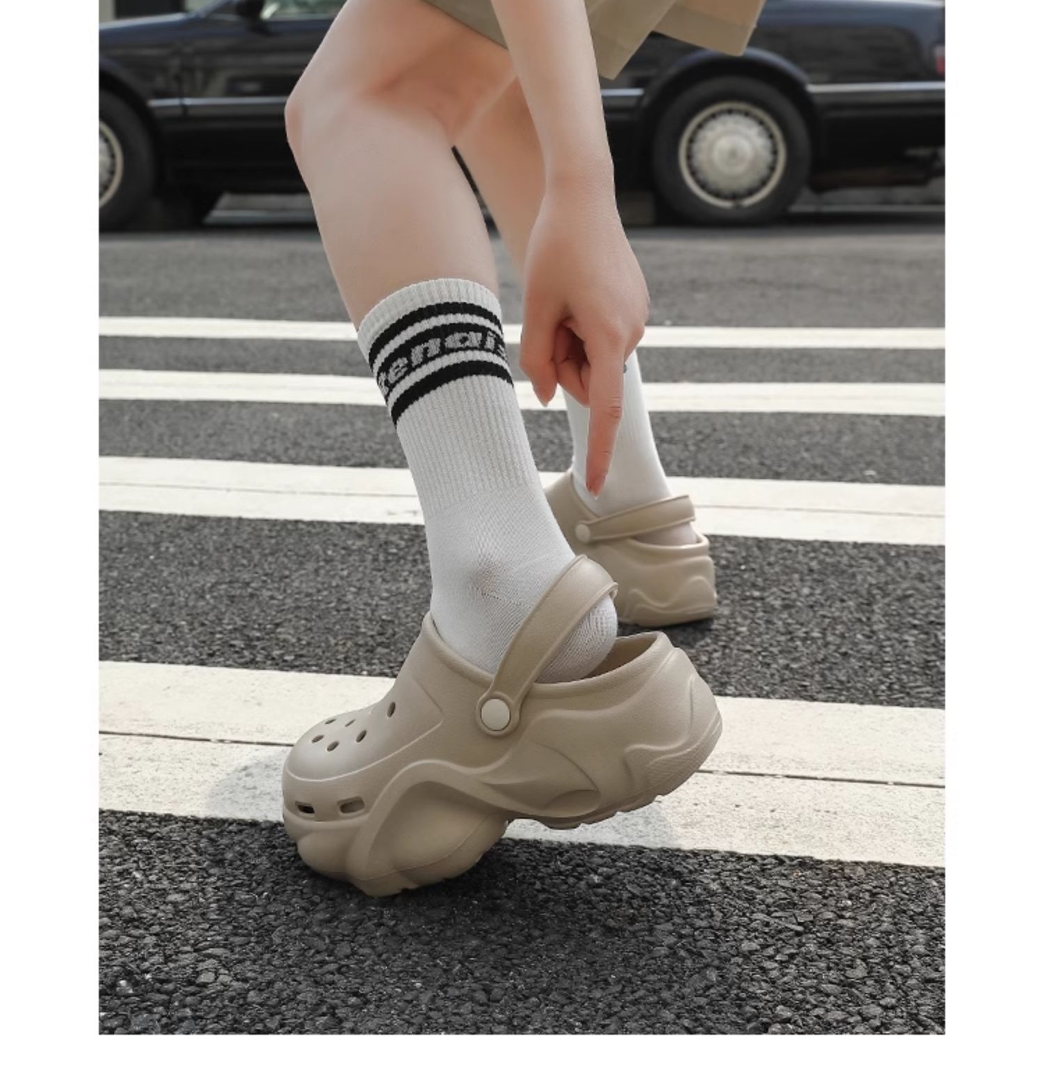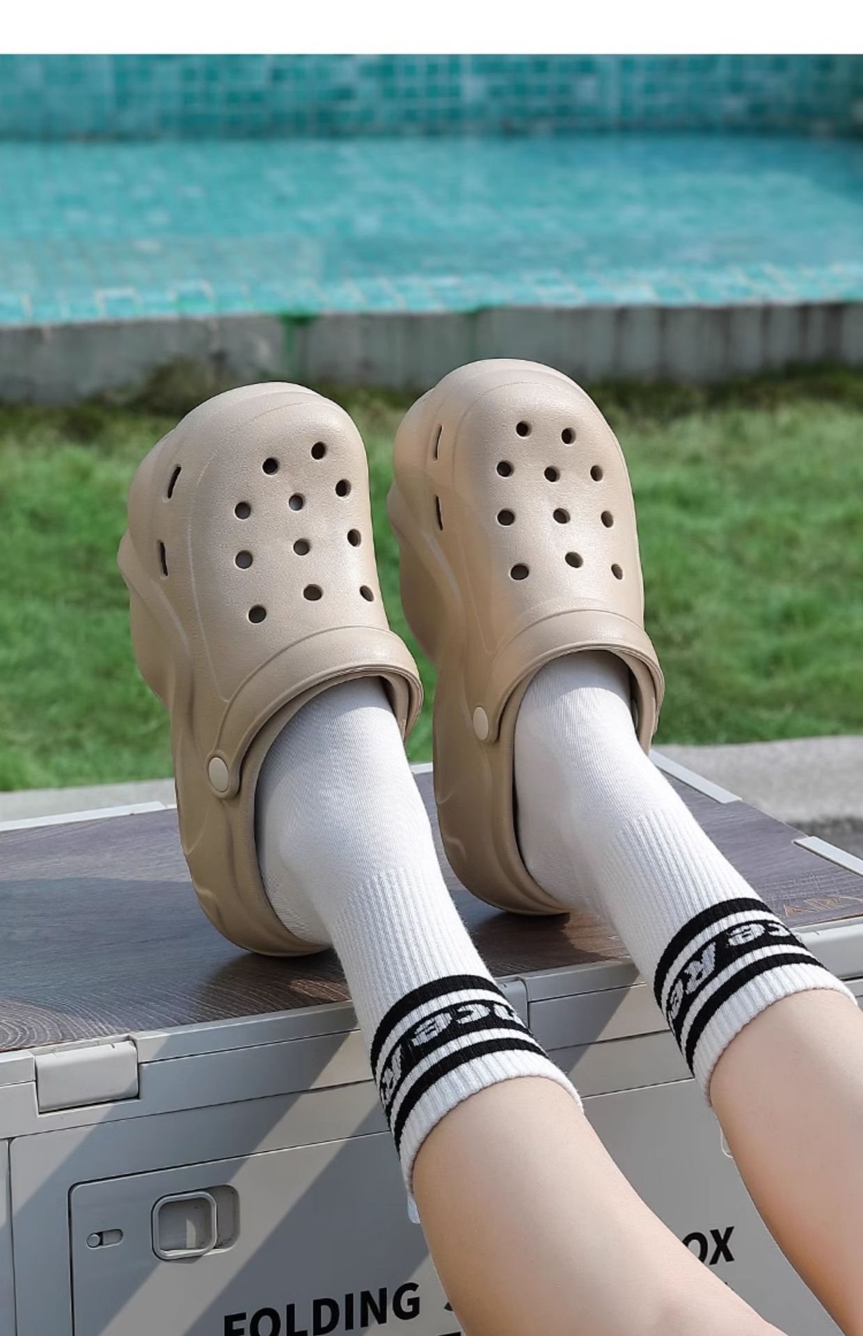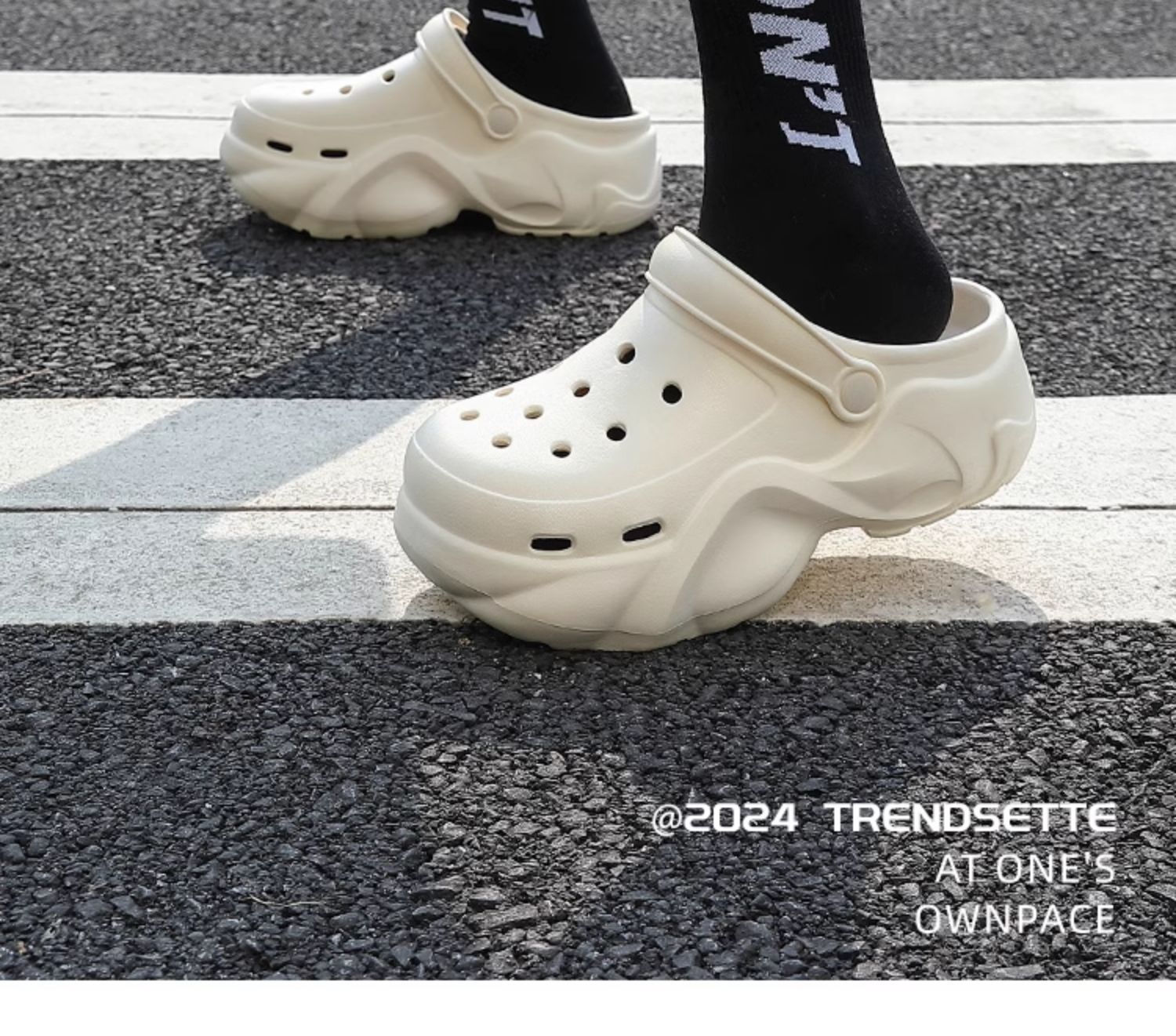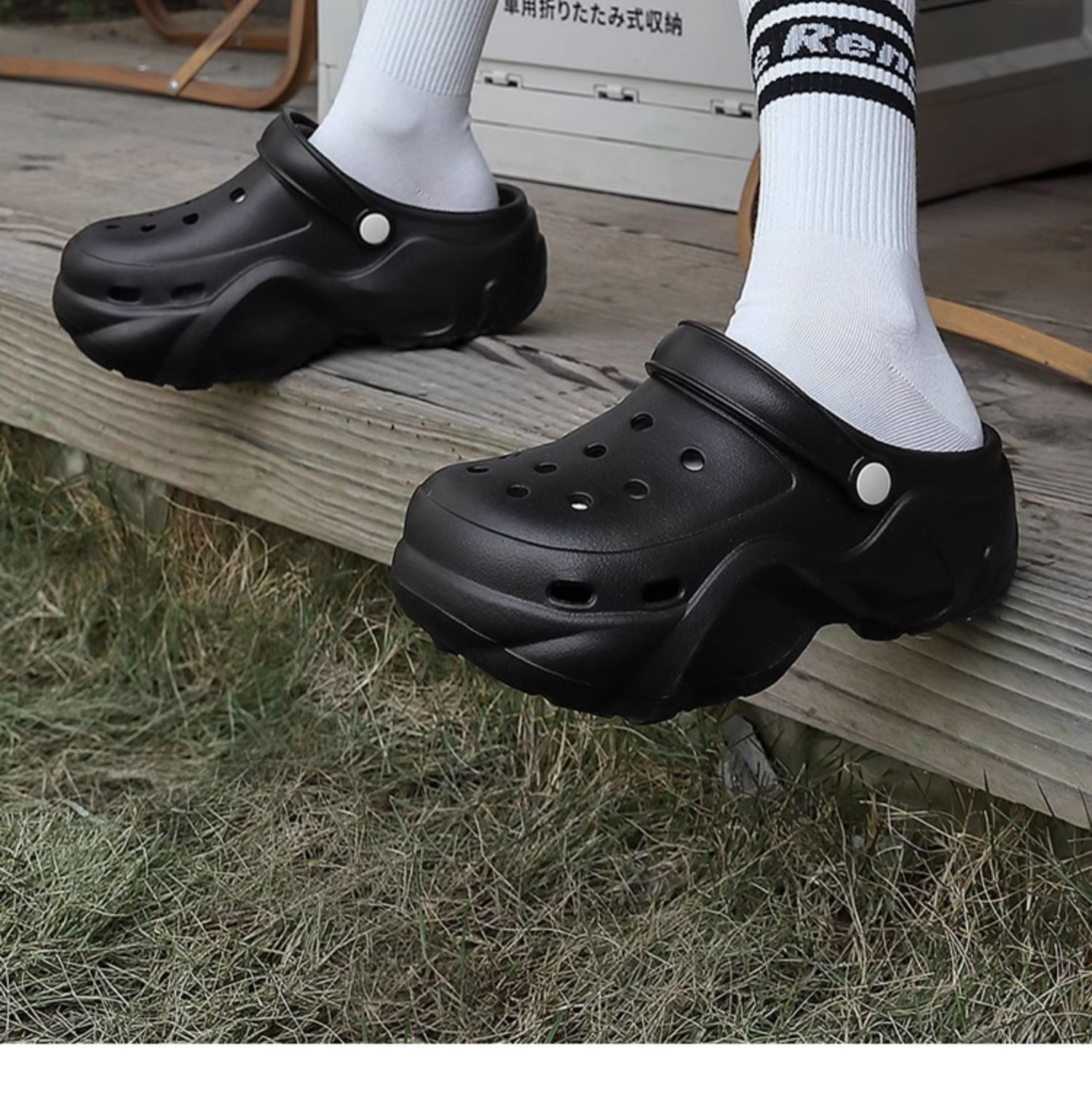 2024 새로운 스타일의 똥 느낌 두꺼운 밑창 구멍 신발 여성용 여름 야외 해변 미끄럼 방지 발가락으로 덮인 슬리퍼