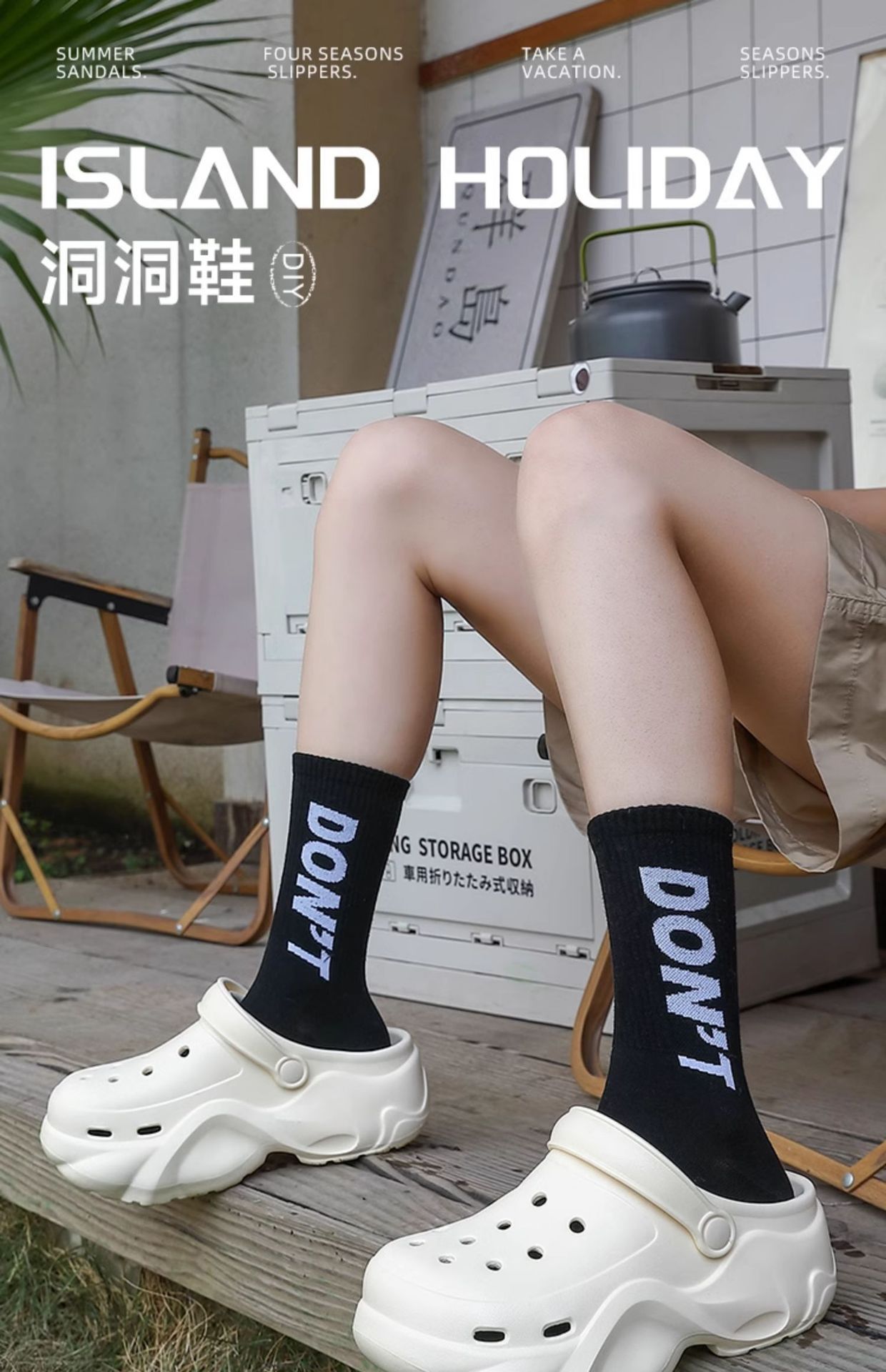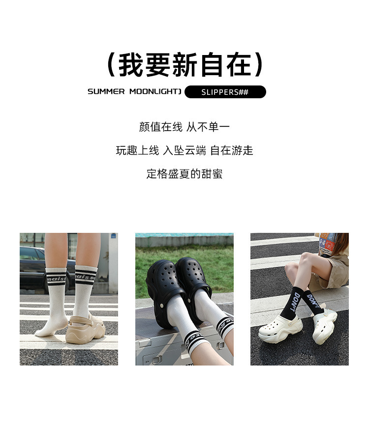 2024 새로운 스타일의 똥 느낌 두꺼운 밑창 구멍 신발 여성용 여름 야외 해변 미끄럼 방지 발가락으로 덮인 슬리퍼스토어 가기