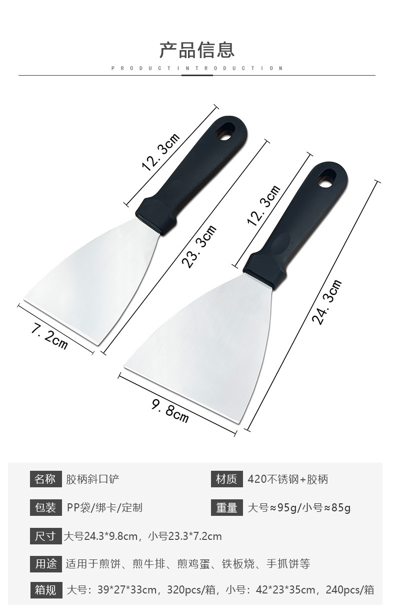 공장 직접 플라스틱 핸들 스테인레스 스틸 대형 대각선 삽 베이킹 도구 피자 삽 스테이크 팬케이크 삽스토어 가기