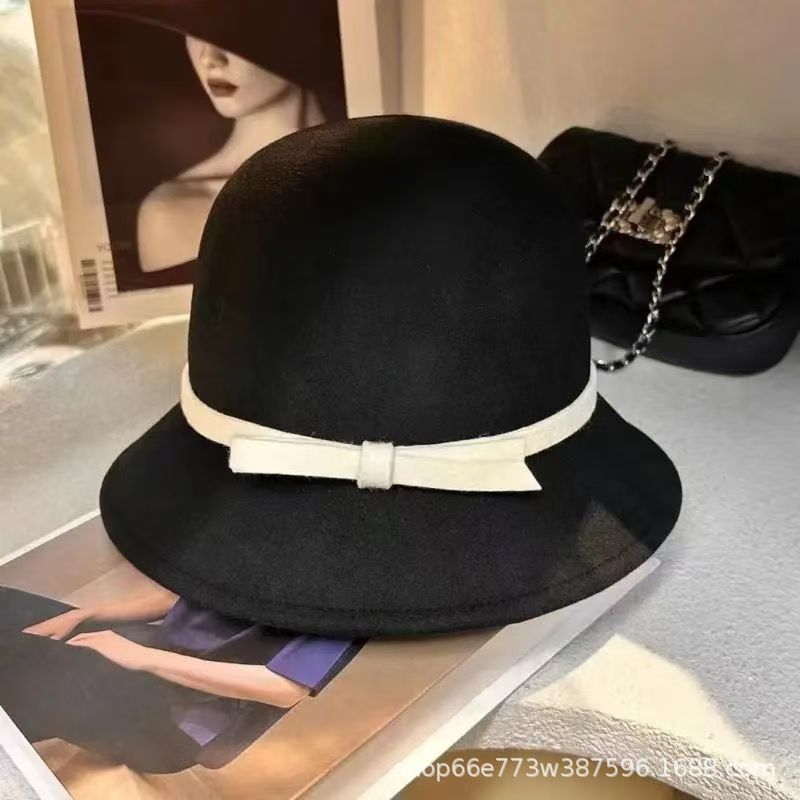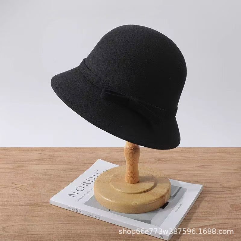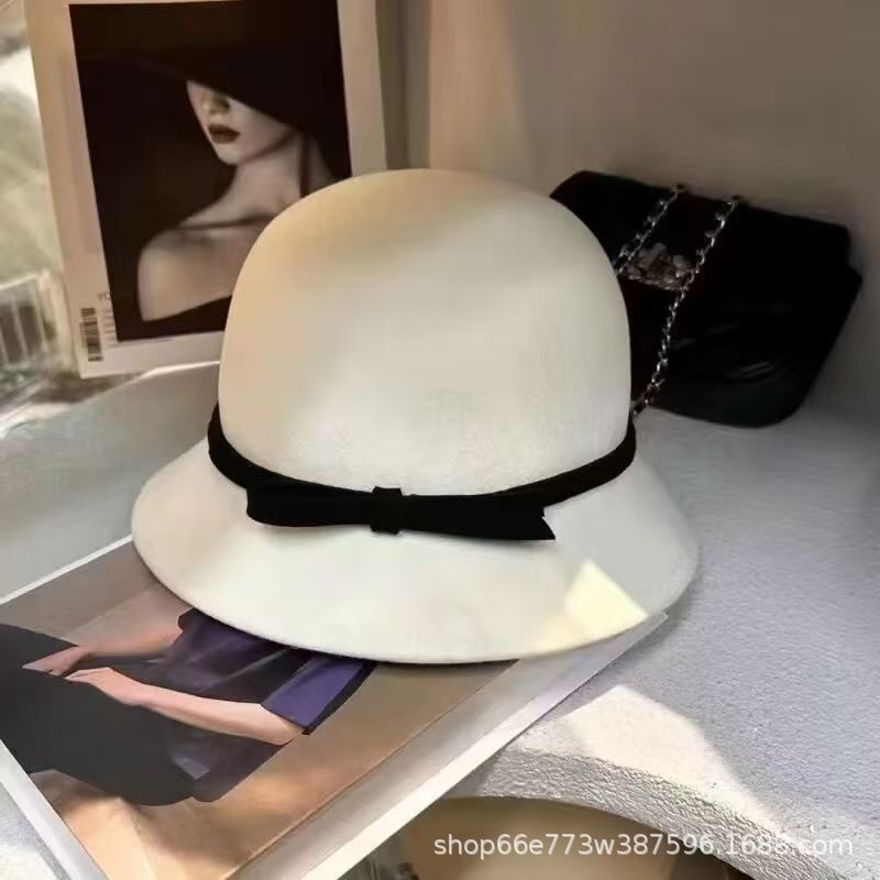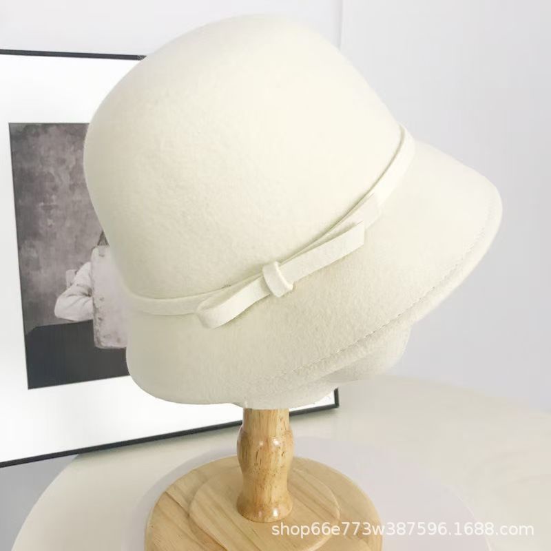 가을과 겨울 얼굴 작은 올 매치 분지 모자 복고풍 헵번 스타일 활 모자 우아한 흰색 모직 어부 모자 한국 스타일스토어 가기