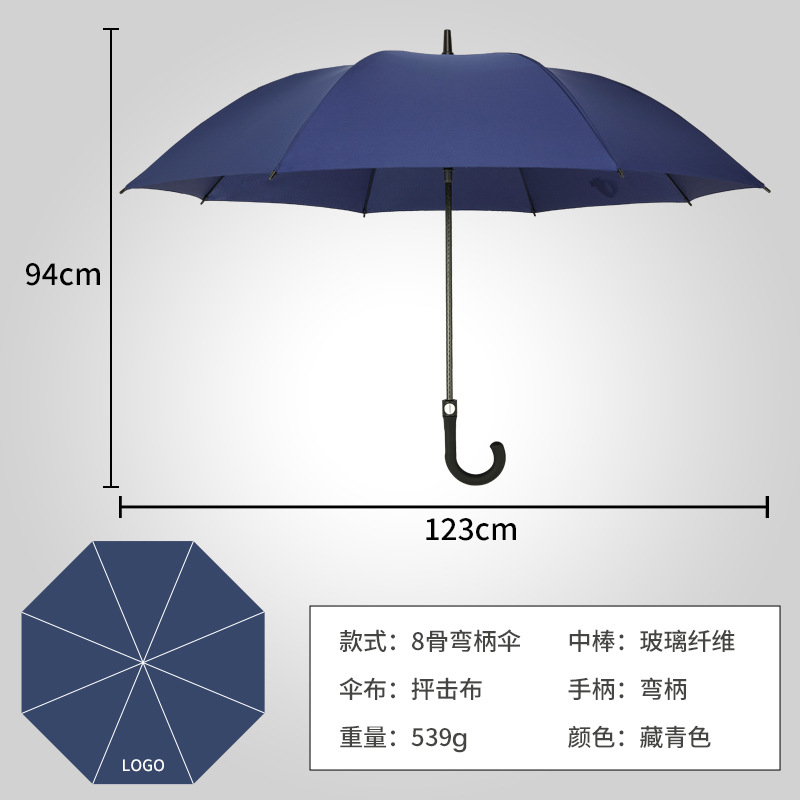 • 8k-슬래밍 천 네이비 블루 곡선 손잡이-우산 아래 직경 120cm