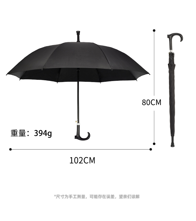 • 280T 폰지 원단 지팡이 우산 블랙 - 우산 펼쳤을 때 지름 110cm