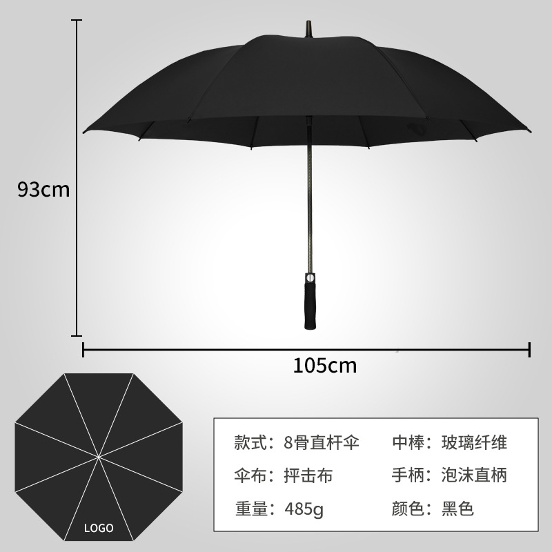 • 8k-슬래밍 천 블랙 스트레이트 폴 스트레이트 핸들-우산 아래 직경 120cm