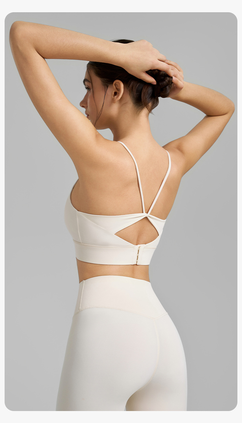 얇은 어깨 끈 요가 조끼 원피스 고정 컵 스포츠 브라 높은 탄성 V 자형 아름다운 백 푸시 업 피트니스 속옷스토어 가기