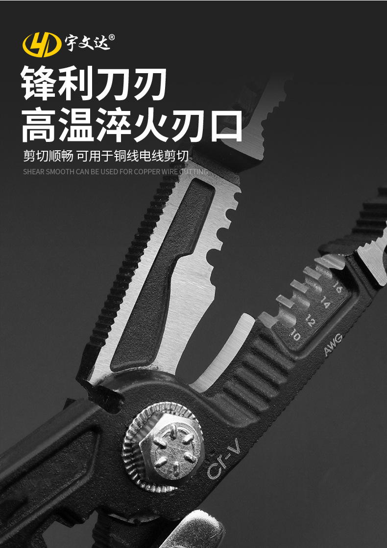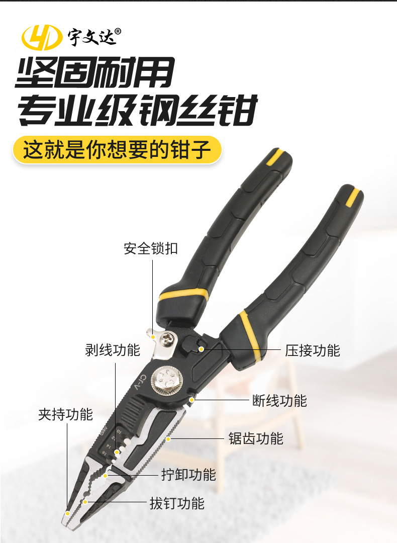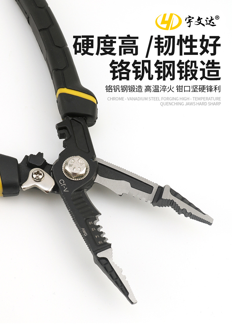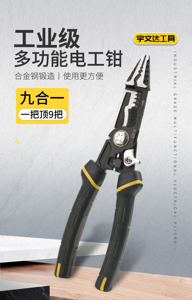 전기기사용 펜치, 크롬 바나듐강, 다기능 9-in-1, 와이어 커팅, 절단, 압착, 잡고 끊는 기능, 노동력 절약형 펜치