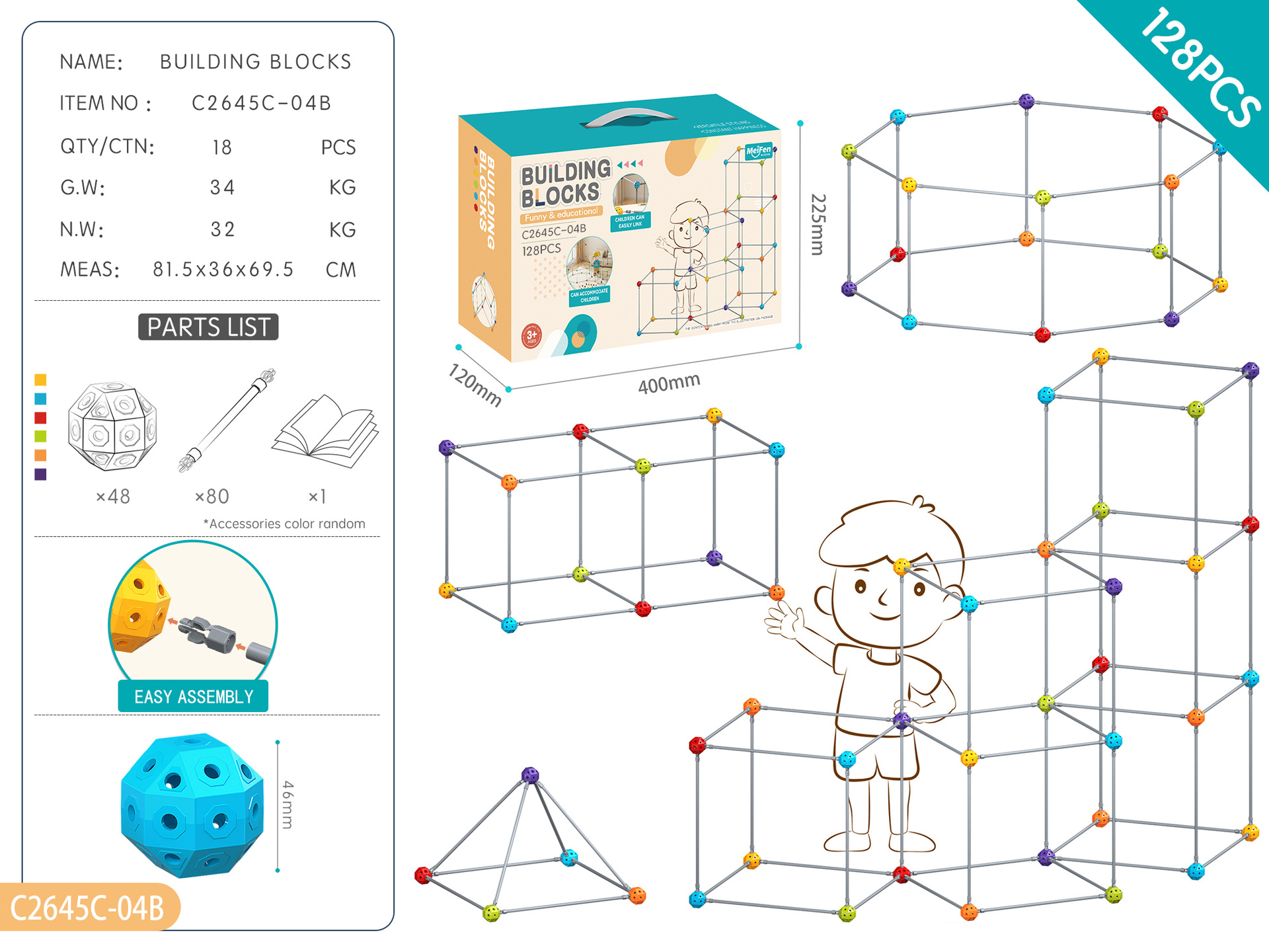 • 【C2645C-04B】건축용 구슬 끼우기 블록 128PCS/무지개색