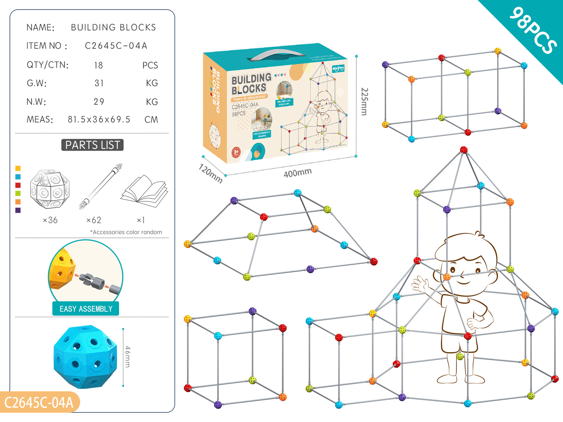 • 【C2645C-04A】건축용 구슬 끼우기 블록 98PCS/무지개색