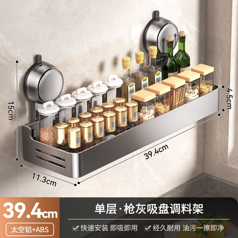 • 2025 드럼형 흡착컵 건그레이 양념수납선반 단층 39.4cm [높고 넓어짐]