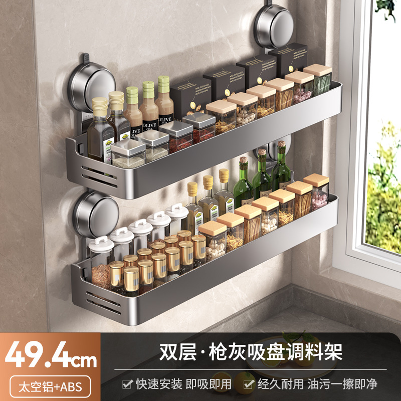 • 2025 드럼 흡입 컵 건 그레이 조미료 보관 랙 더블 레이어 49.4cm [높고 넓어짐]