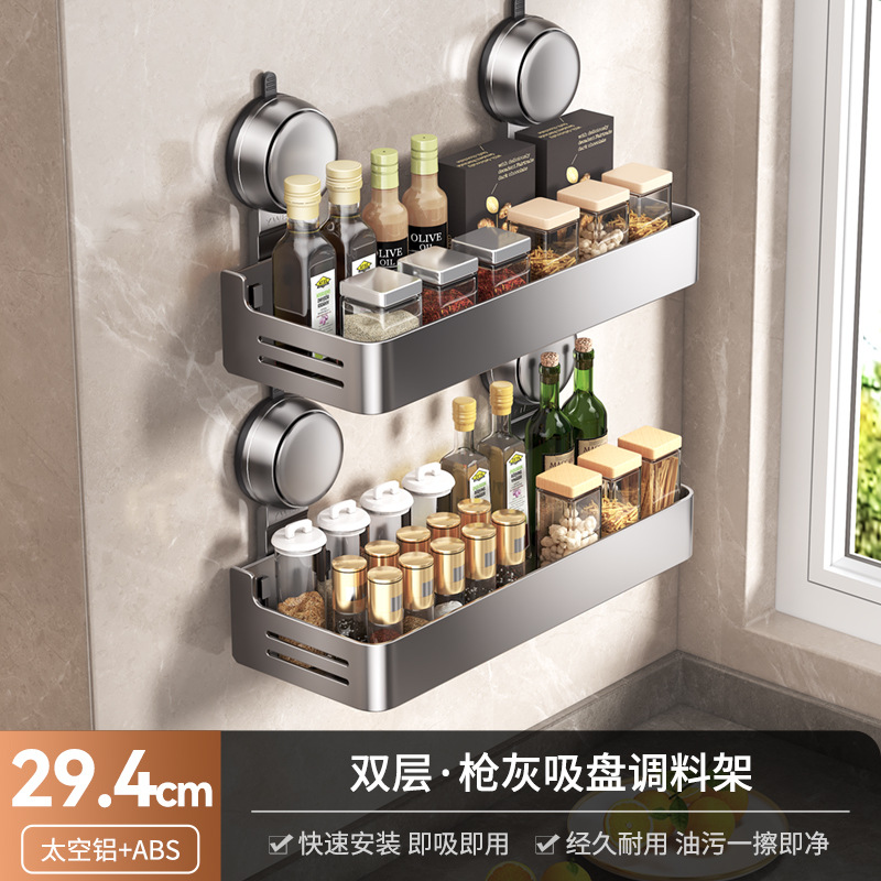 • 2025 드럼 흡입 컵 건 그레이 조미료 보관 랙 더블 레이어 29.4cm [높고 넓어짐]