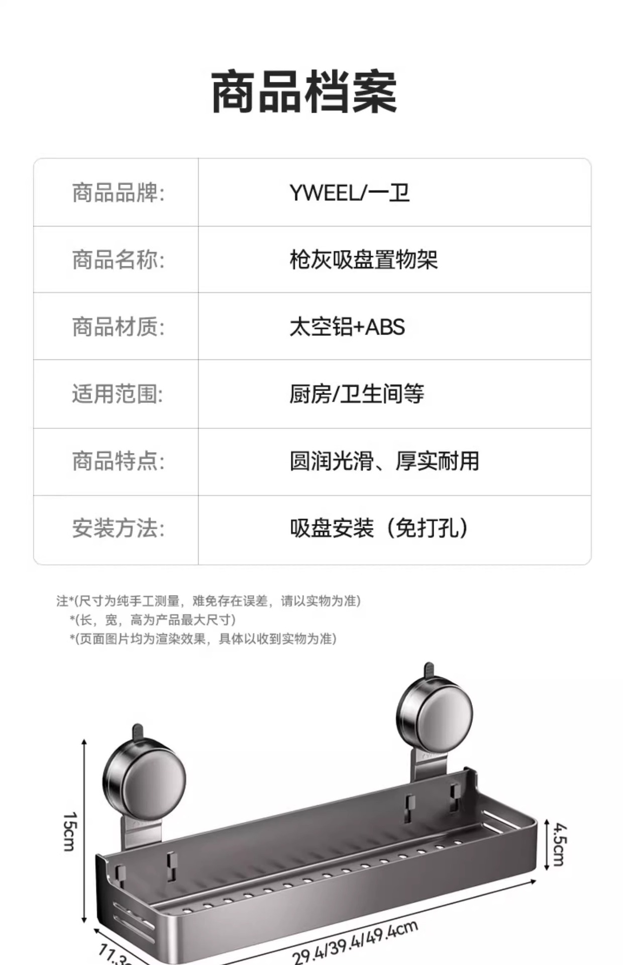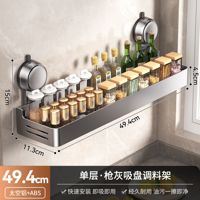 • 2025 드럼형 흡착컵 건그레이 양념수납선반 단층 49.4cm [높고 넓어짐]