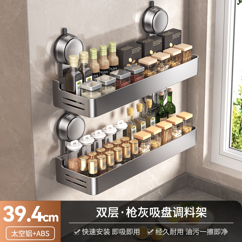 • 2025 드럼 흡입 컵 건 그레이 조미료 보관 랙 더블 레이어 39.4cm [높고 넓어짐]