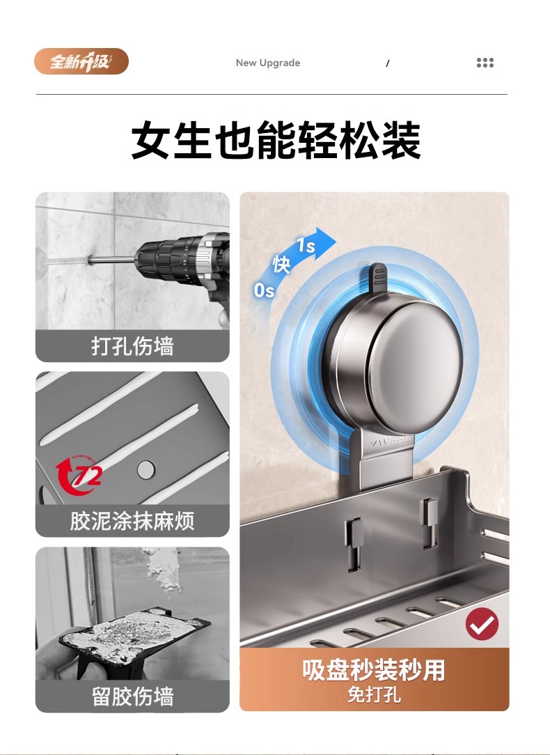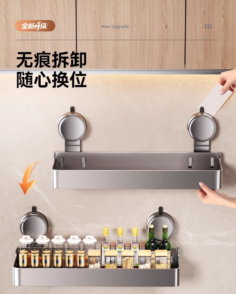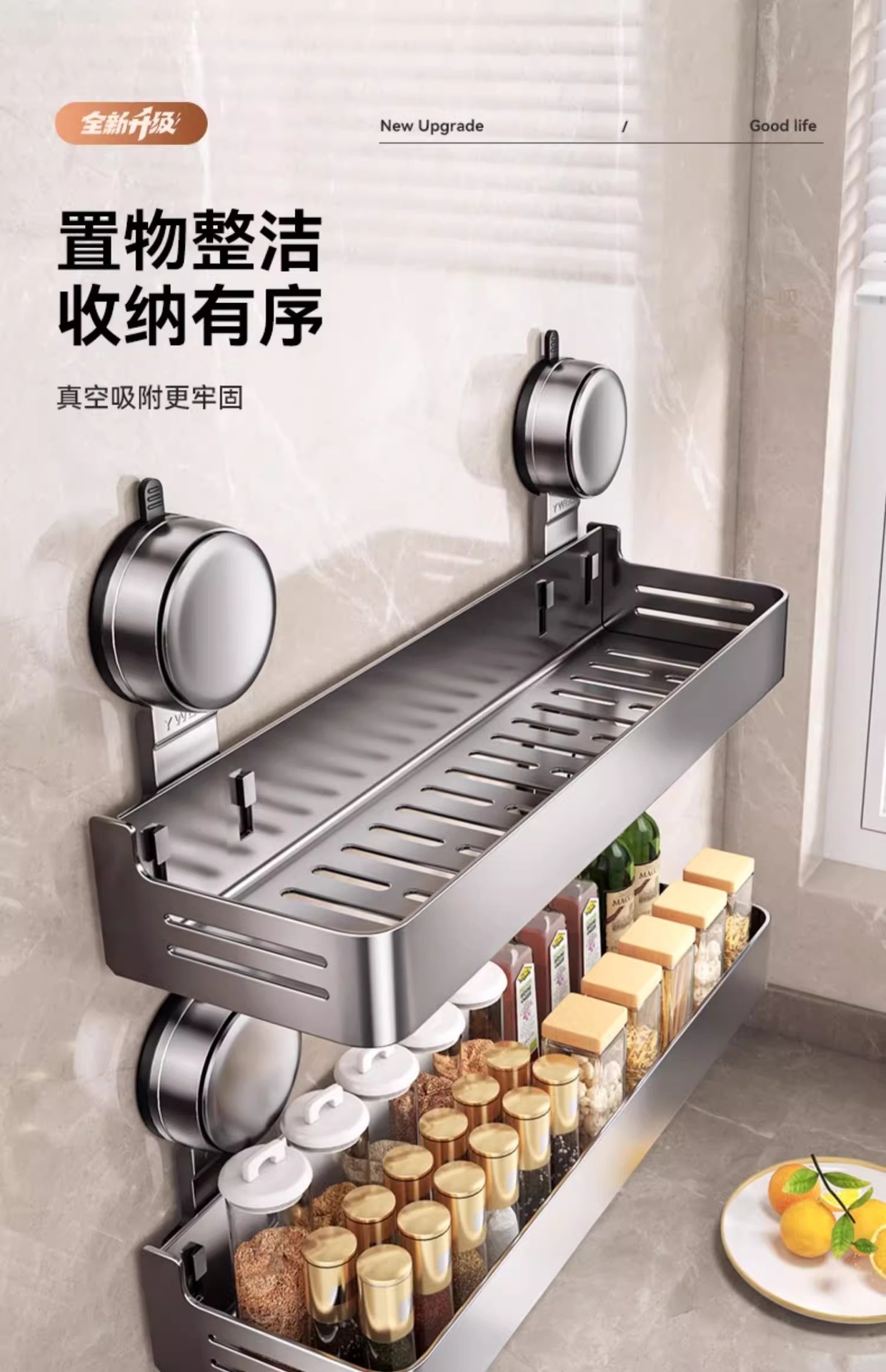석션 컵 주방 스토리지 랙 다기능 벽 장착 조정 랙 벽 장착 조정 랙 펀치 프리 가정용 스토리지 랙