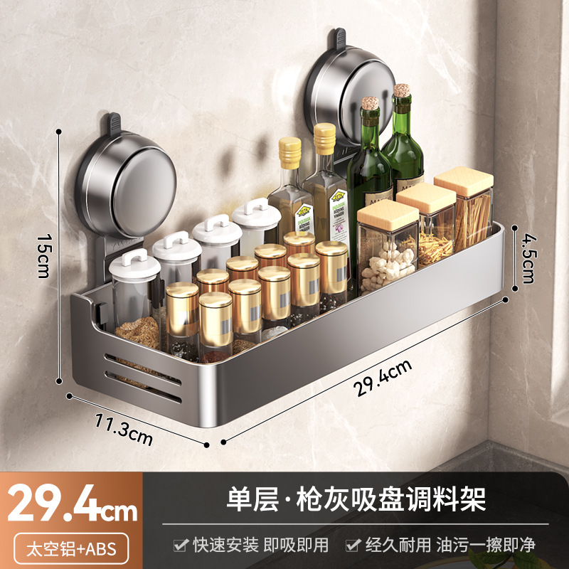 • 2025 드럼형 흡착컵 건그레이 양념수납선반 단층 29.4cm [높고 넓어짐]