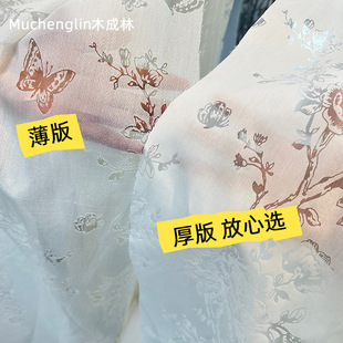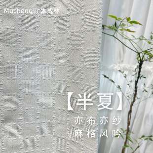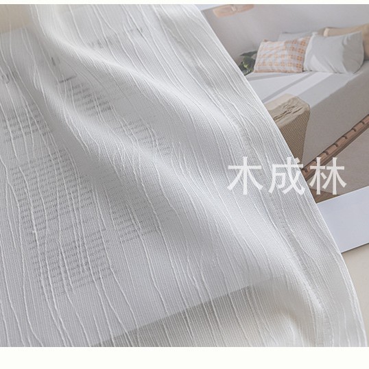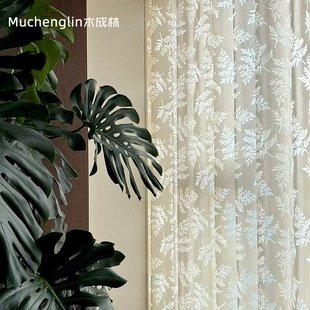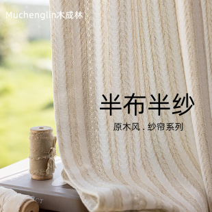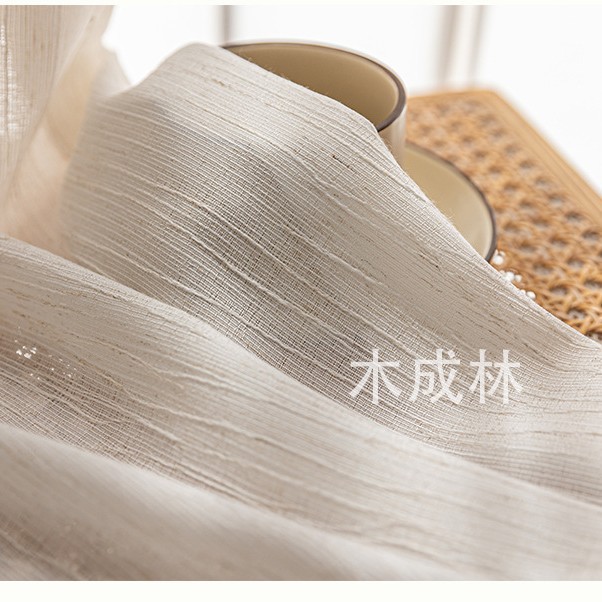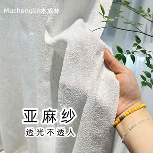 新款奶油色扶风纱棉麻质感透光不透人提花纱客厅卧室阳台成品纱帘