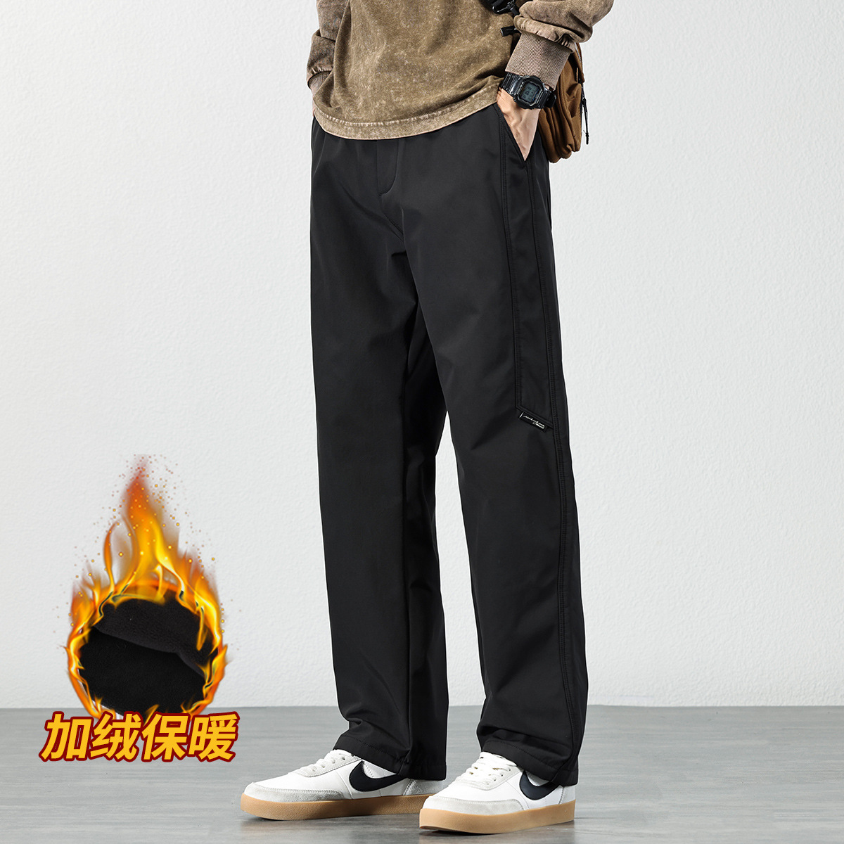 남성용 스트레이트 캐주얼 팬츠 2025 신상 미국 스타일 가을 겨울 기모 안감 방수 방풍 방오 기능성 팬츠 루즈핏 와이드 팬츠스토어 가기