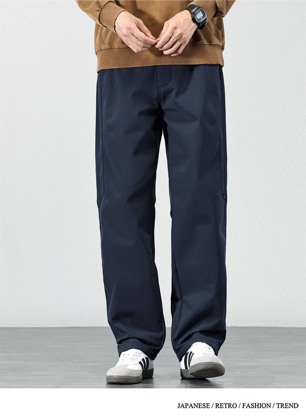 남성용 스트레이트 캐주얼 팬츠 2025 신상 미국 스타일 가을 겨울 기모 안감 방수 방풍 방오 기능성 팬츠 루즈핏 와이드 팬츠