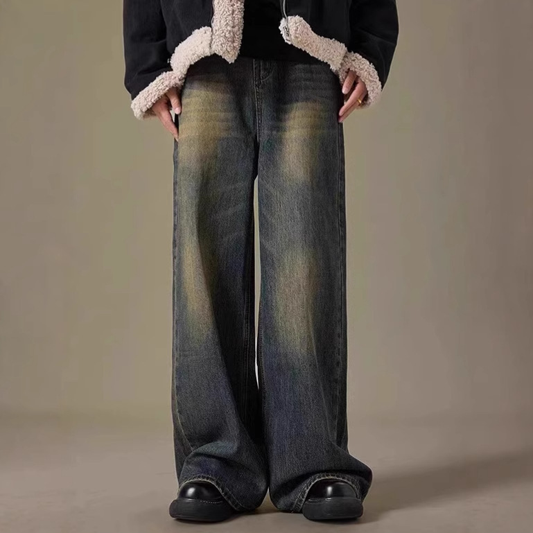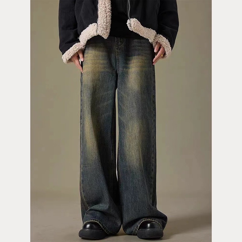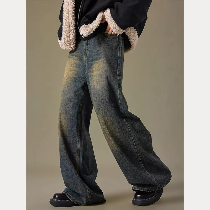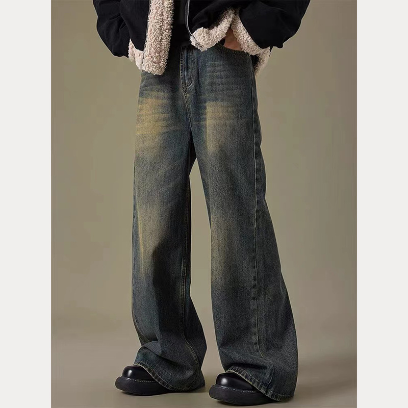 아메리칸 워시 올드 레트로 청바지 남성용 가을과 겨울 새로운 하이 스트리트 캐주얼 루즈 와이드 레그 롱 바지스토어 가기