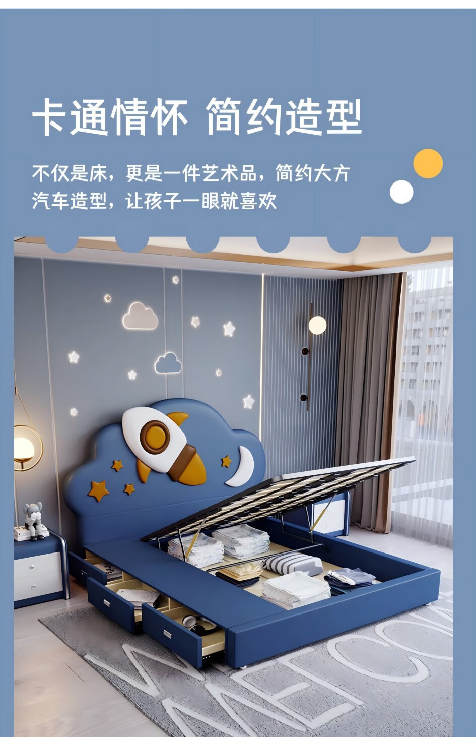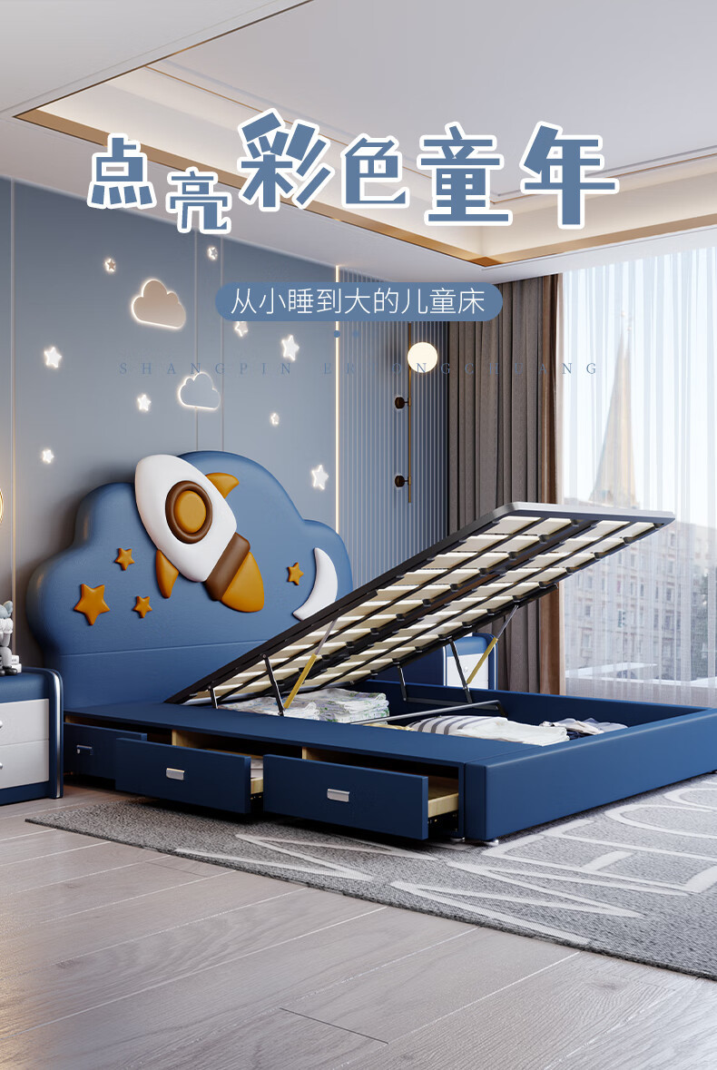 모든 단단한 나무 침대 어린이 침대 다기능 침대 소년의 아이 같은 로켓 침대 만화 공간 침대 간단한 창조적 인 소년의 침대스토어 가기