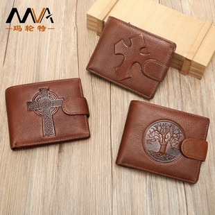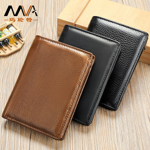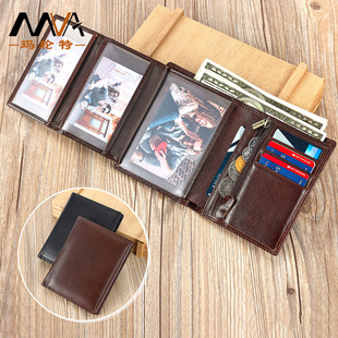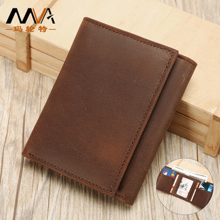 국경 간 뜨거운 판매 남성 정품 가죽 레트로 지갑 하이 엔드 센스 짧은 RFID 도난 방지 브러시 머니 클립 오일 왁스 카우보이 카드 가방