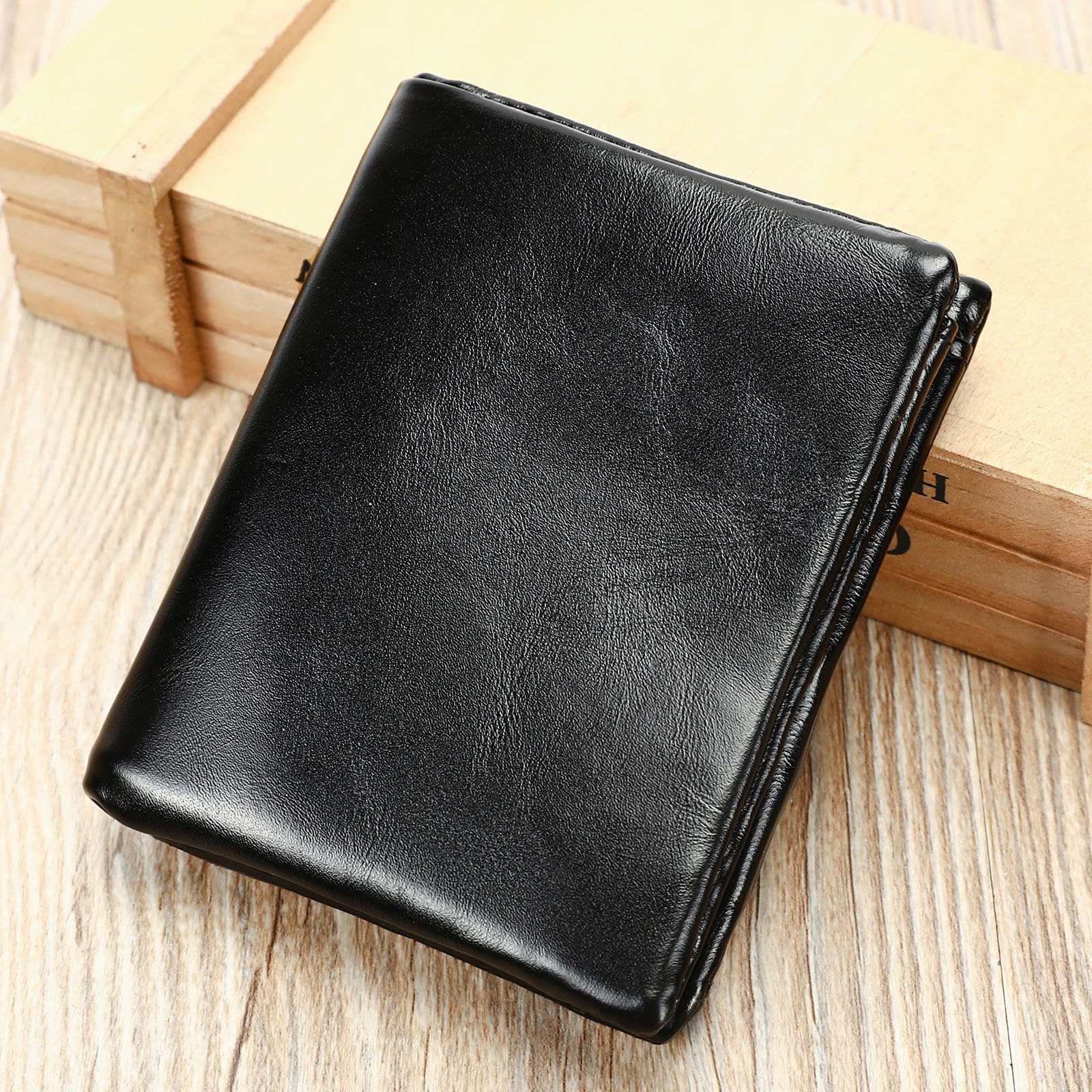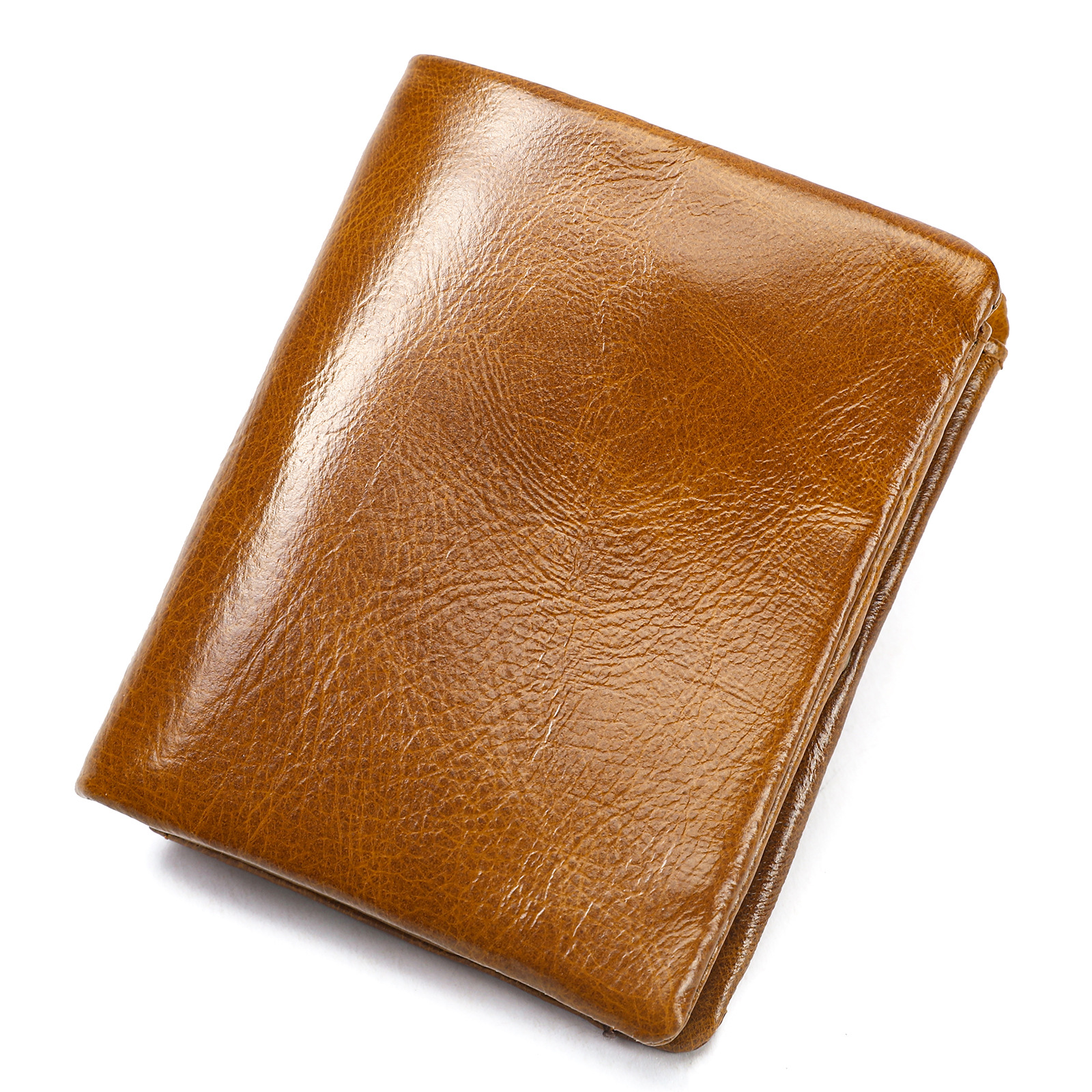 국경 간 뜨거운 판매 남성 정품 가죽 레트로 지갑 하이 엔드 센스 짧은 RFID 도난 방지 브러시 머니 클립 오일 왁스 카우보이 카드 가방스토어 가기