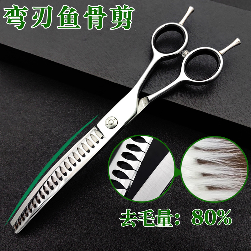 전문 애완동물 가위, 물고기뼈 모양, 자연스러운 곡선, 푹신한 곡선, 이빨 가위, 강아지 미용, 테디 털 다듬기 및 얇게 자르기 도구스토어 가기