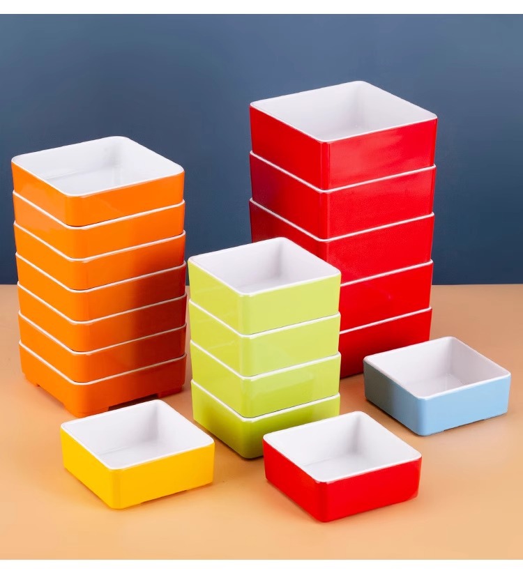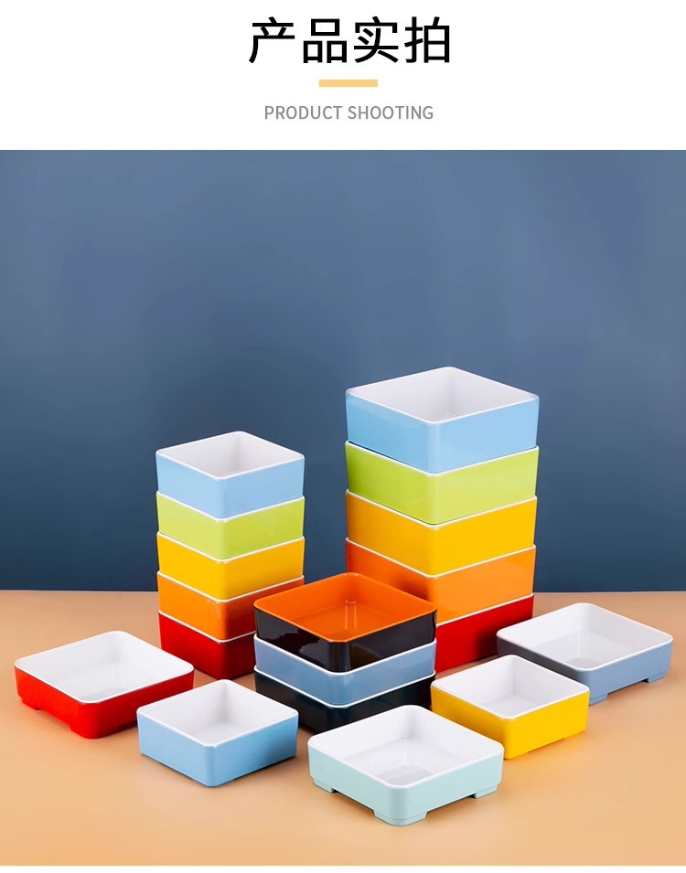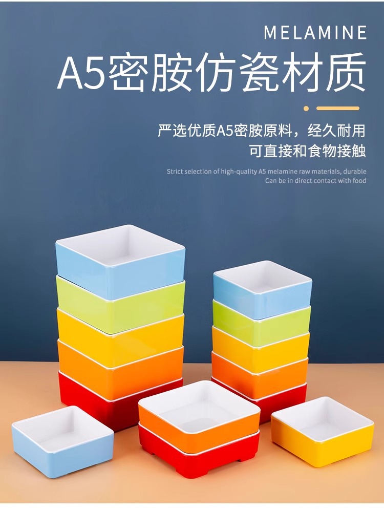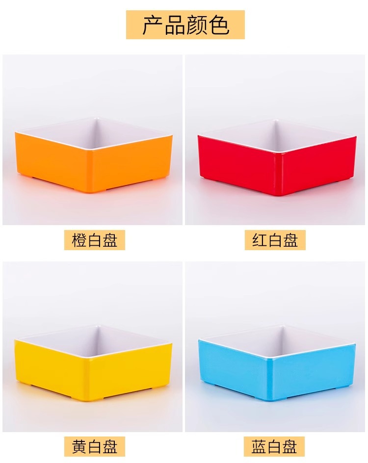 멜라민 과일 접시, 뷔페용 핫팟 반찬 접시, 쌓을 수 있는 사각형 상자, 해산물 쌀국물 소형 핫팟 식기, 상업용스토어 가기
