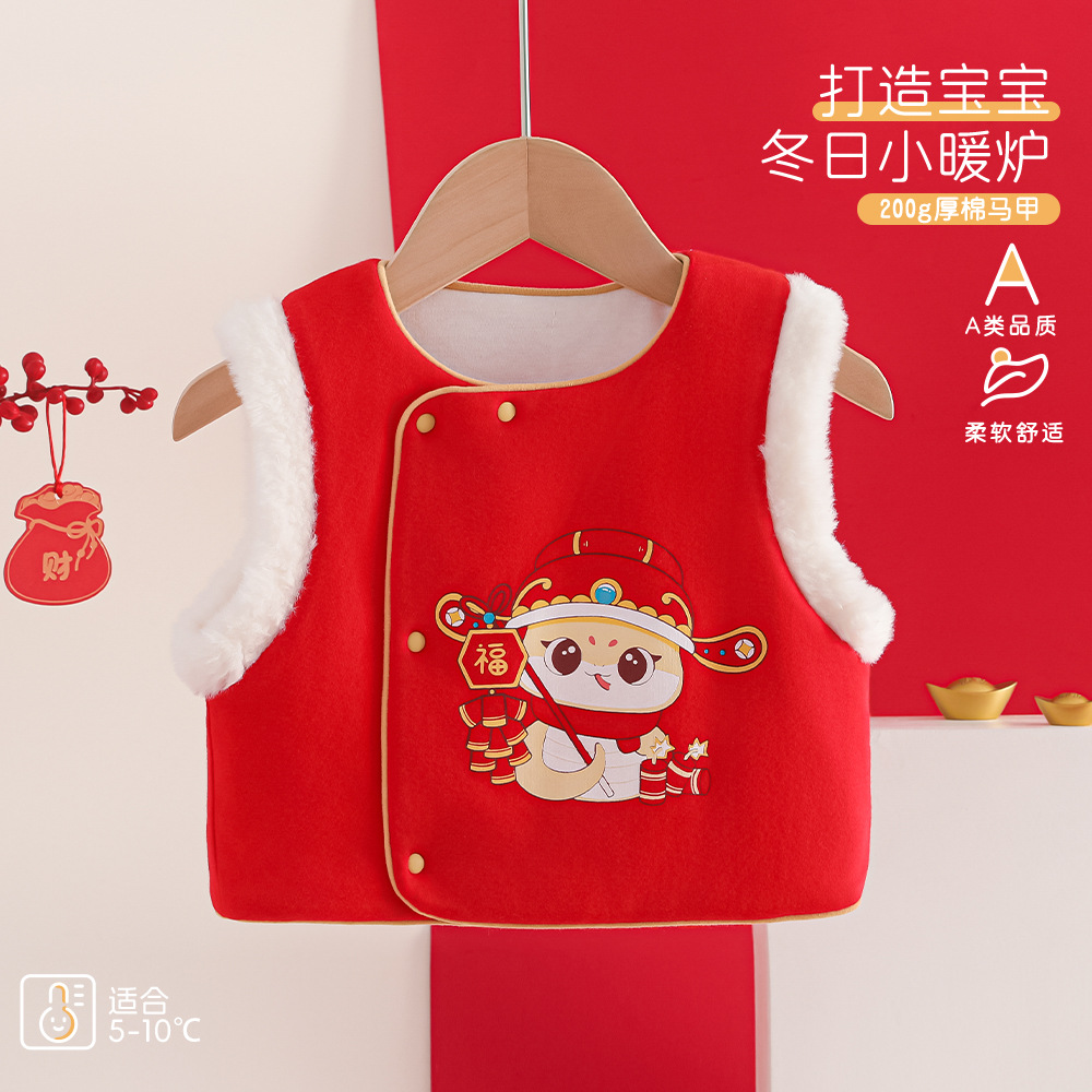 아기 아기 신년 빨간 조끼 새로운 클래스 두꺼운 면화 조끼 100 일 늙은 남자들과 소녀들의 허리 코트스토어 가기