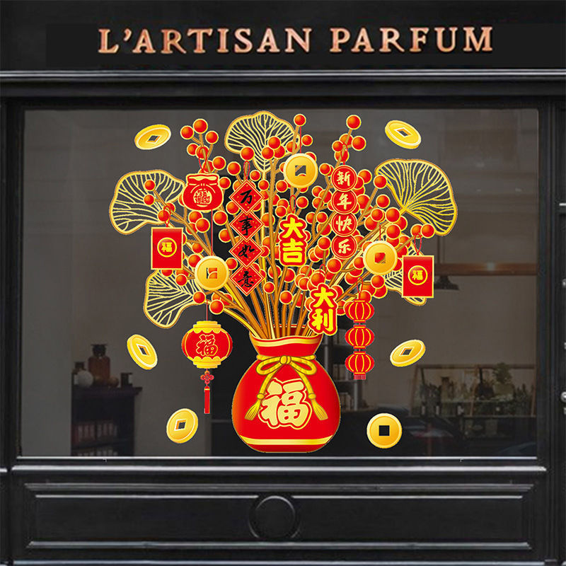 2025 새해 포춘 트리 장식 스티커 드래곤 년 봄 축제 신년 사진 정전기 스티커 유리 창 스티커 창 스티커 창 스티커스토어 가기