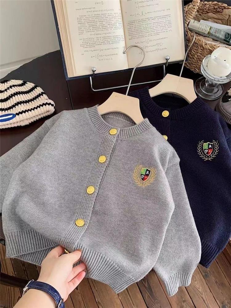 어린이 스웨터 카디건 봄과 가을 소년과 소녀 아카데미 스타일 자수 톱 올 매치 보이즈 소프트 웨스턴 스타일 코트 한국 스타일스토어 가기