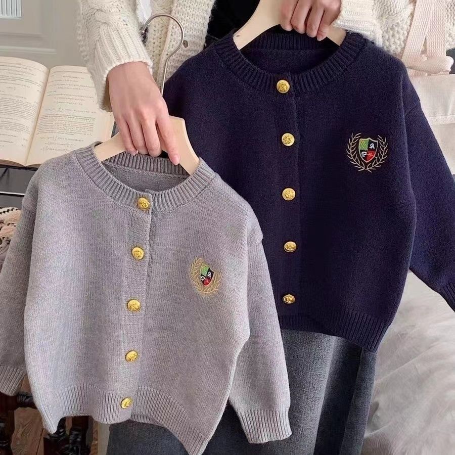 어린이 스웨터 카디건 봄과 가을 소년과 소녀 아카데미 스타일 자수 톱 올 매치 보이즈 소프트 웨스턴 스타일 코트 한국 스타일