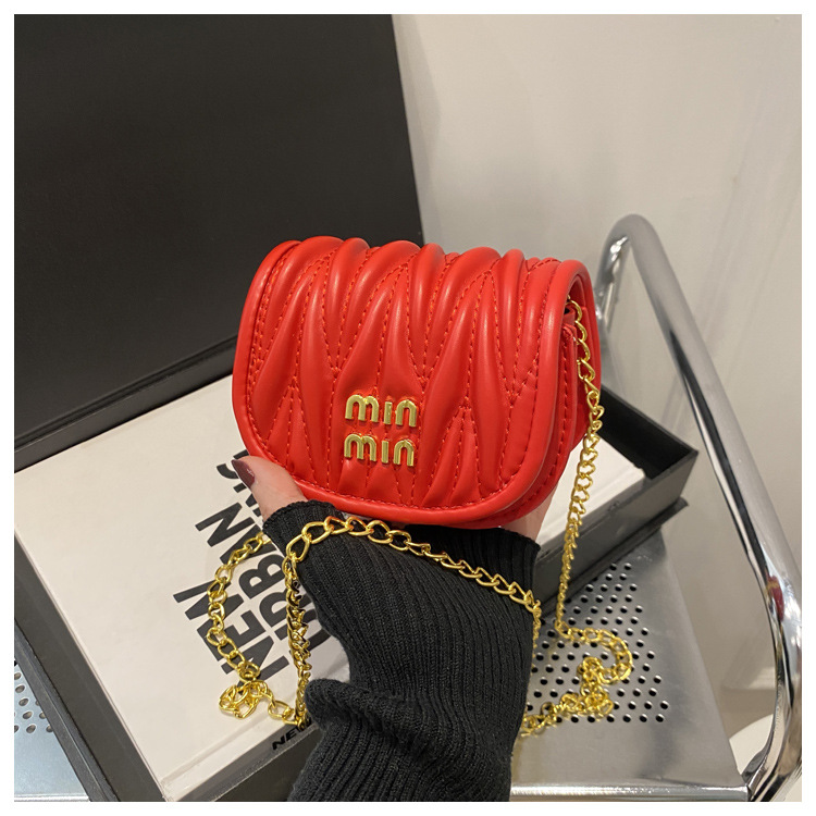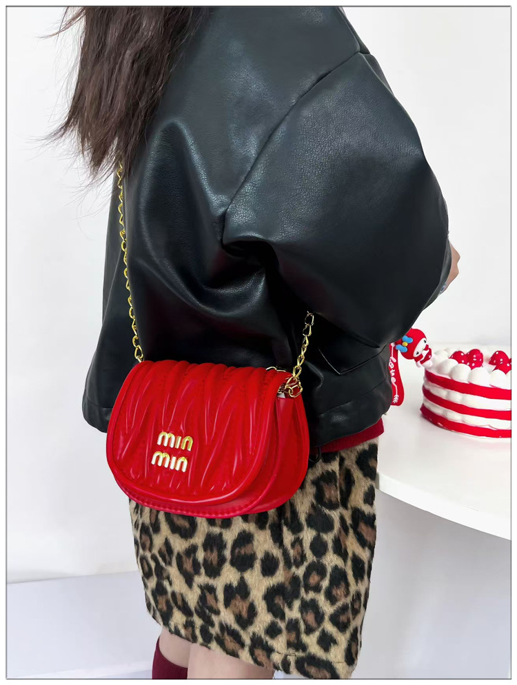 가을과 겨울 미니 작은 가방 소녀 2024 새로운 패션 PU 빨간 자수 새해 동전 지갑 체인 크로스 바디 백