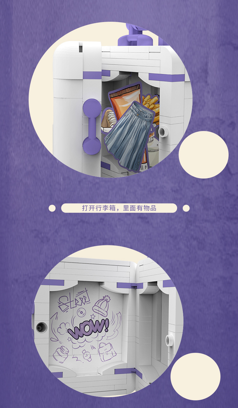 귀여운 만화 수하물 빌딩 블록 조립 작은 입자 장난감 장식품 트롤리 케이스 소녀 장난감 생일 선물스토어 가기
