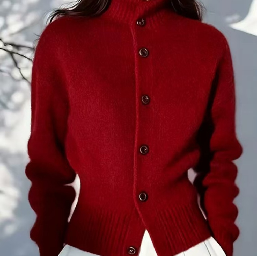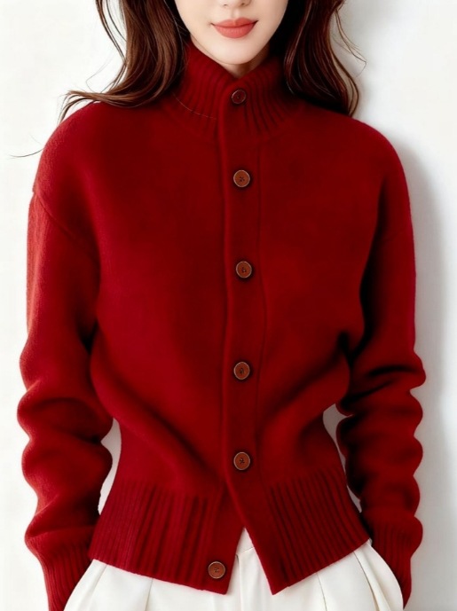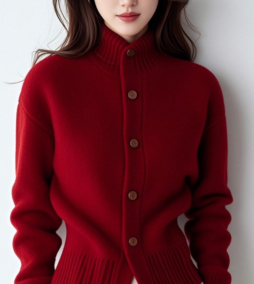 패션과 서양 스타일 아름다운 붉은 목 긴 소매 스웨터 니트 카디건 여성의 가을과 겨울 새로운 느슨한 슈퍼 좋은 작은 셔츠
