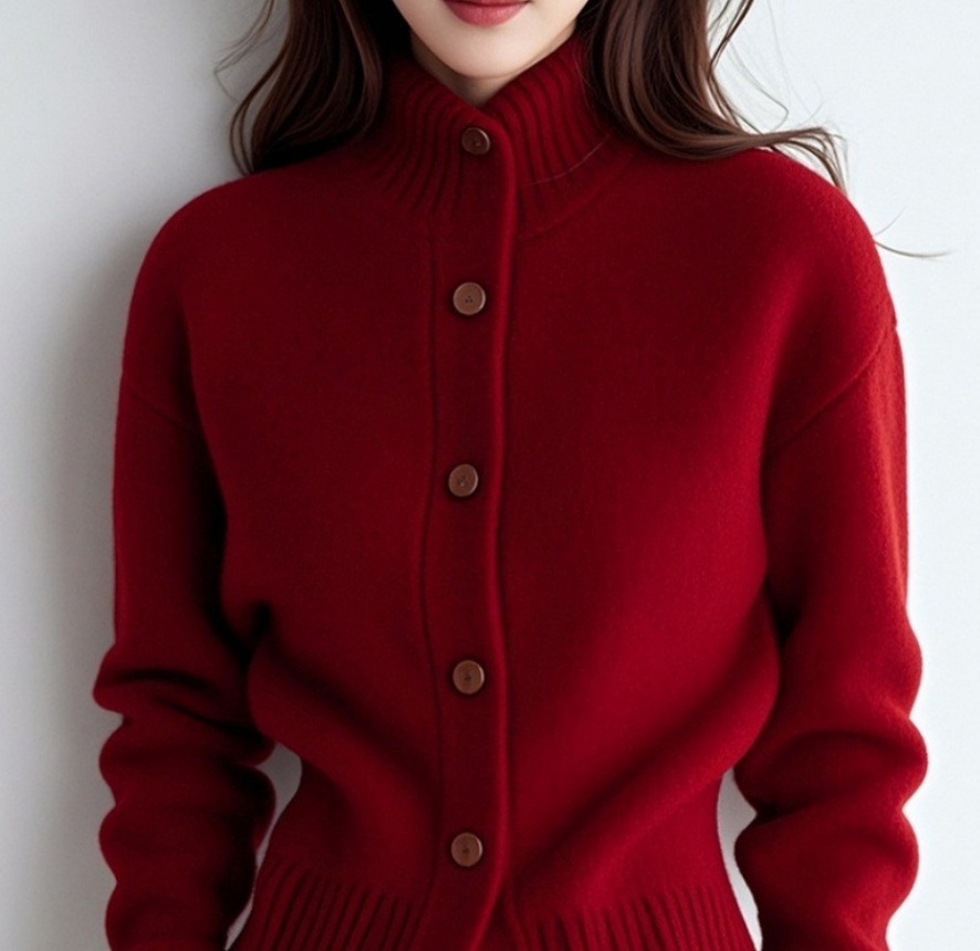 패션과 서양 스타일 아름다운 붉은 목 긴 소매 스웨터 니트 카디건 여성의 가을과 겨울 새로운 느슨한 슈퍼 좋은 작은 셔츠스토어 가기