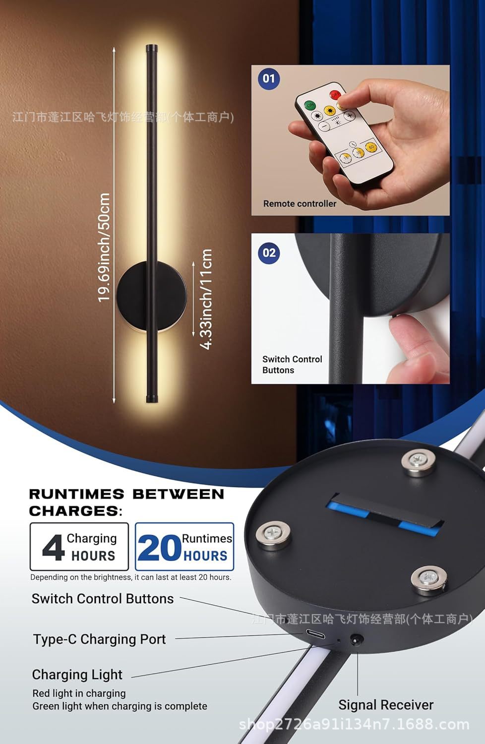 360 ° 회전식 자기 흡착 벽 램프(리모컨 포함), 조광 가능 무선 충전 벽 램프, 배선이 필요 없는 USB 인터페이스 벽 램프