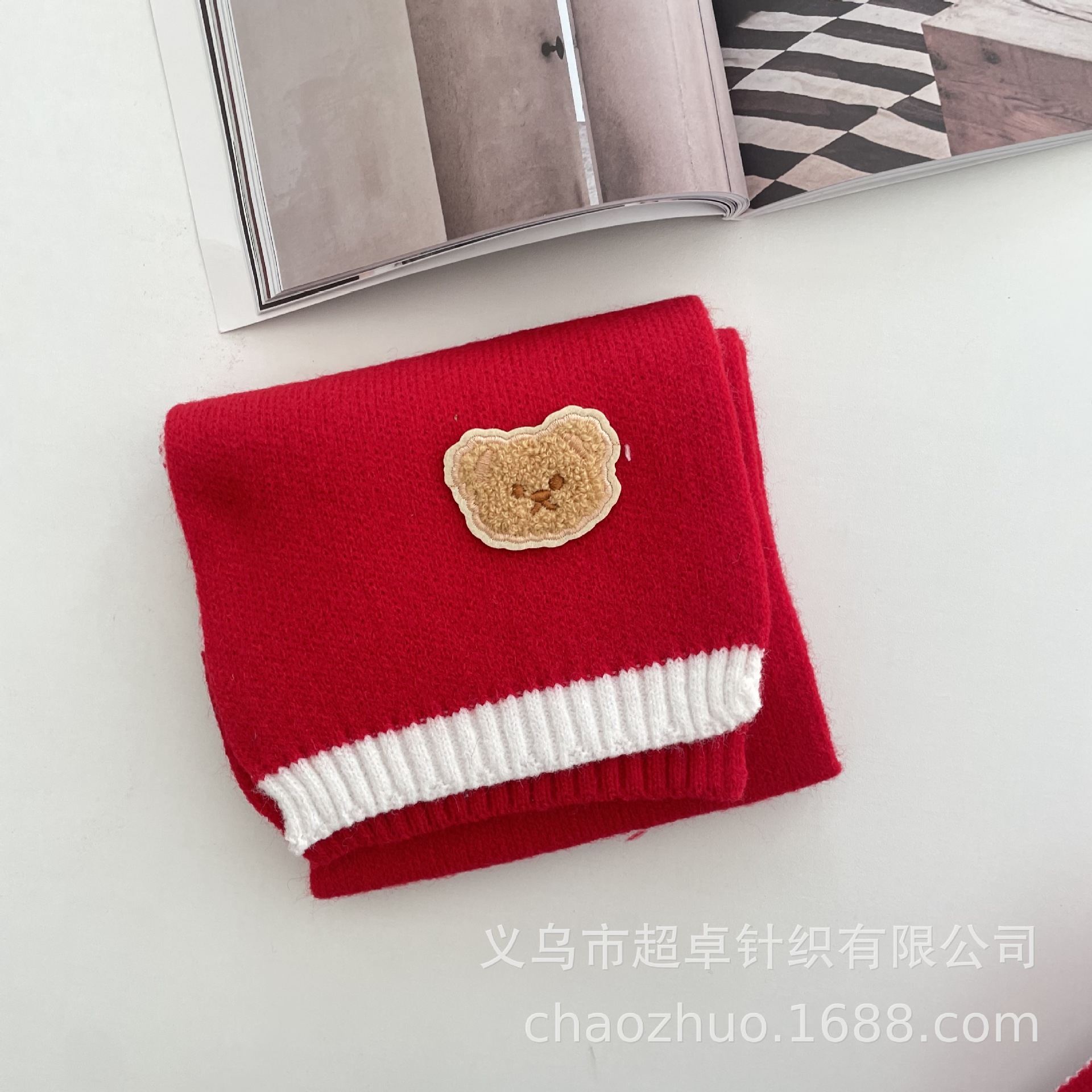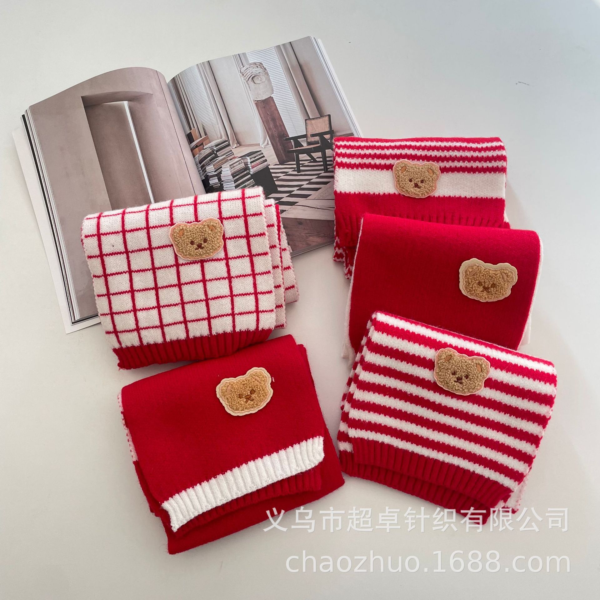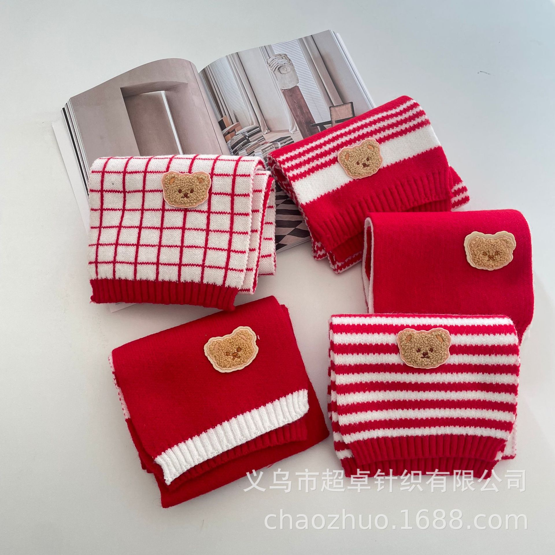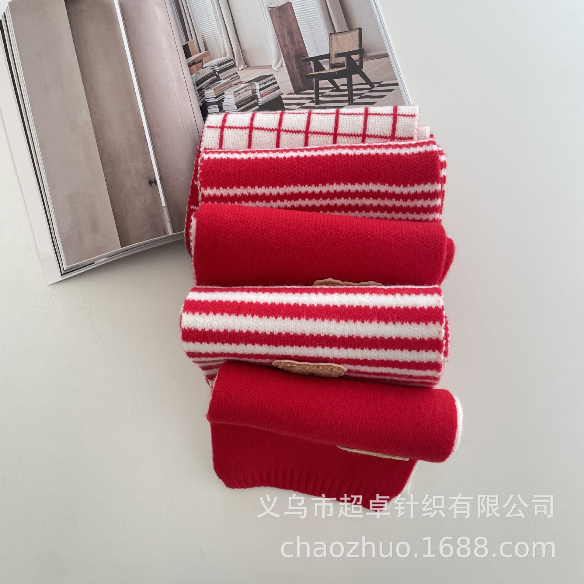 新年红复古拼色麻花针织围巾