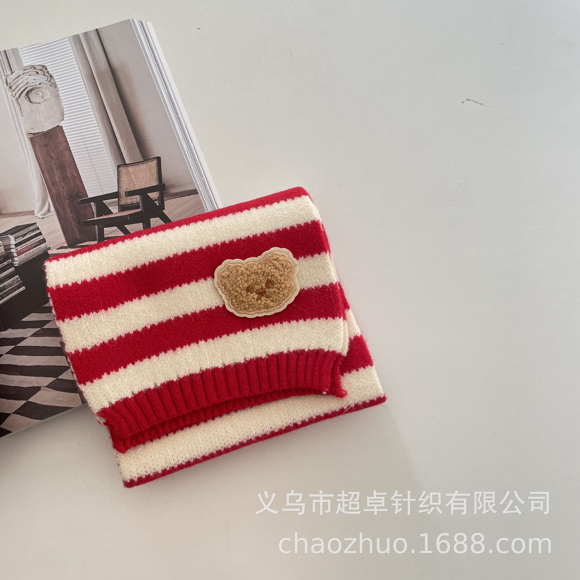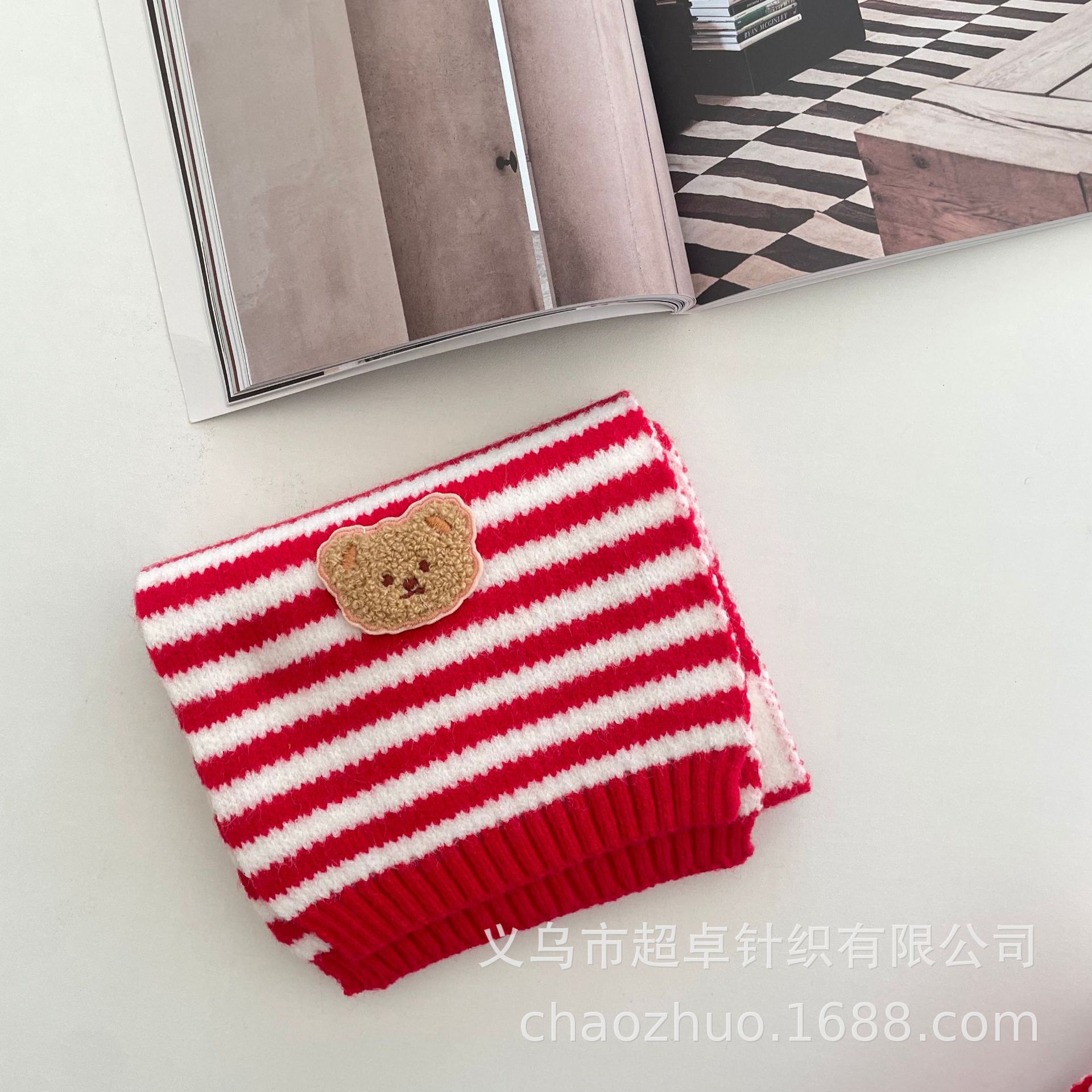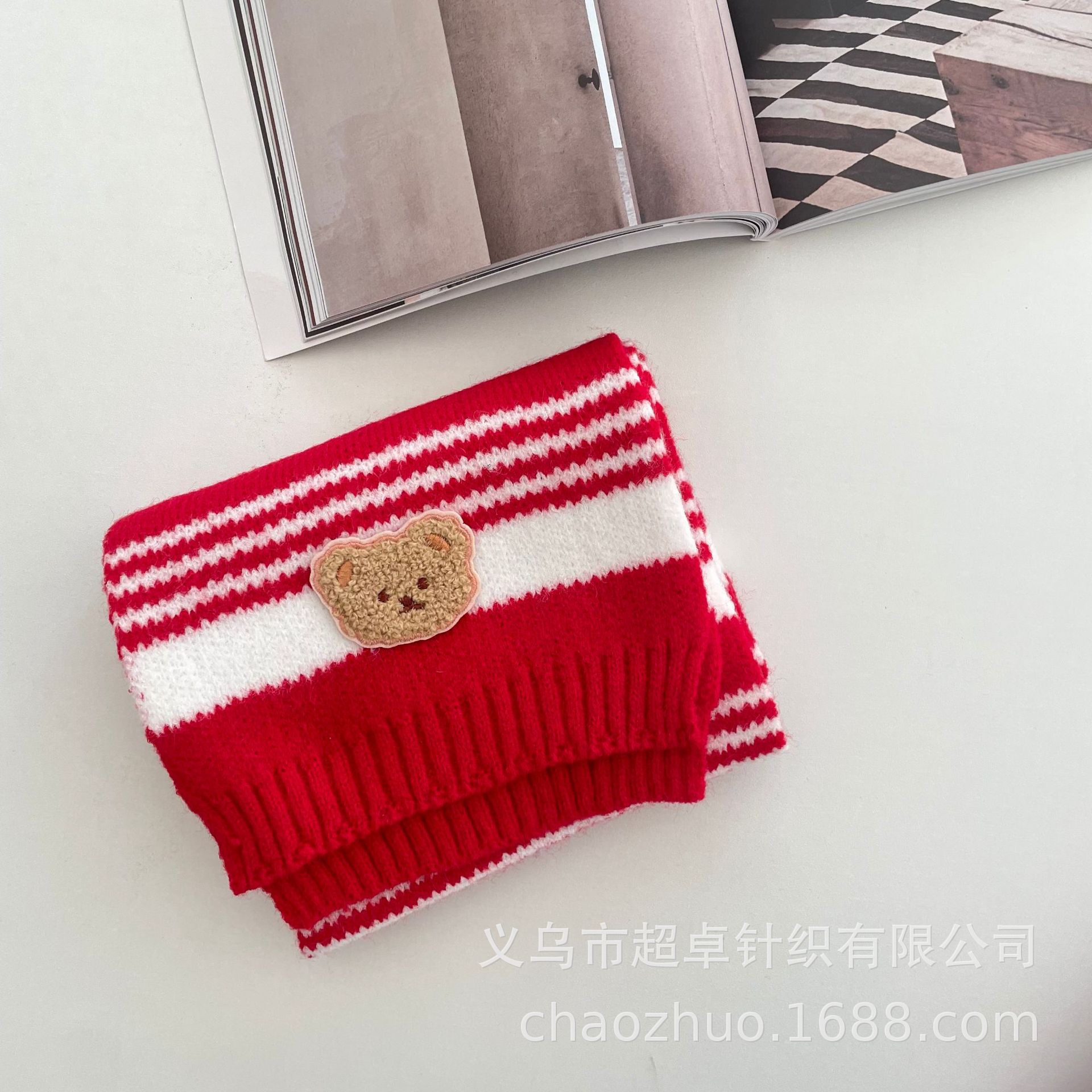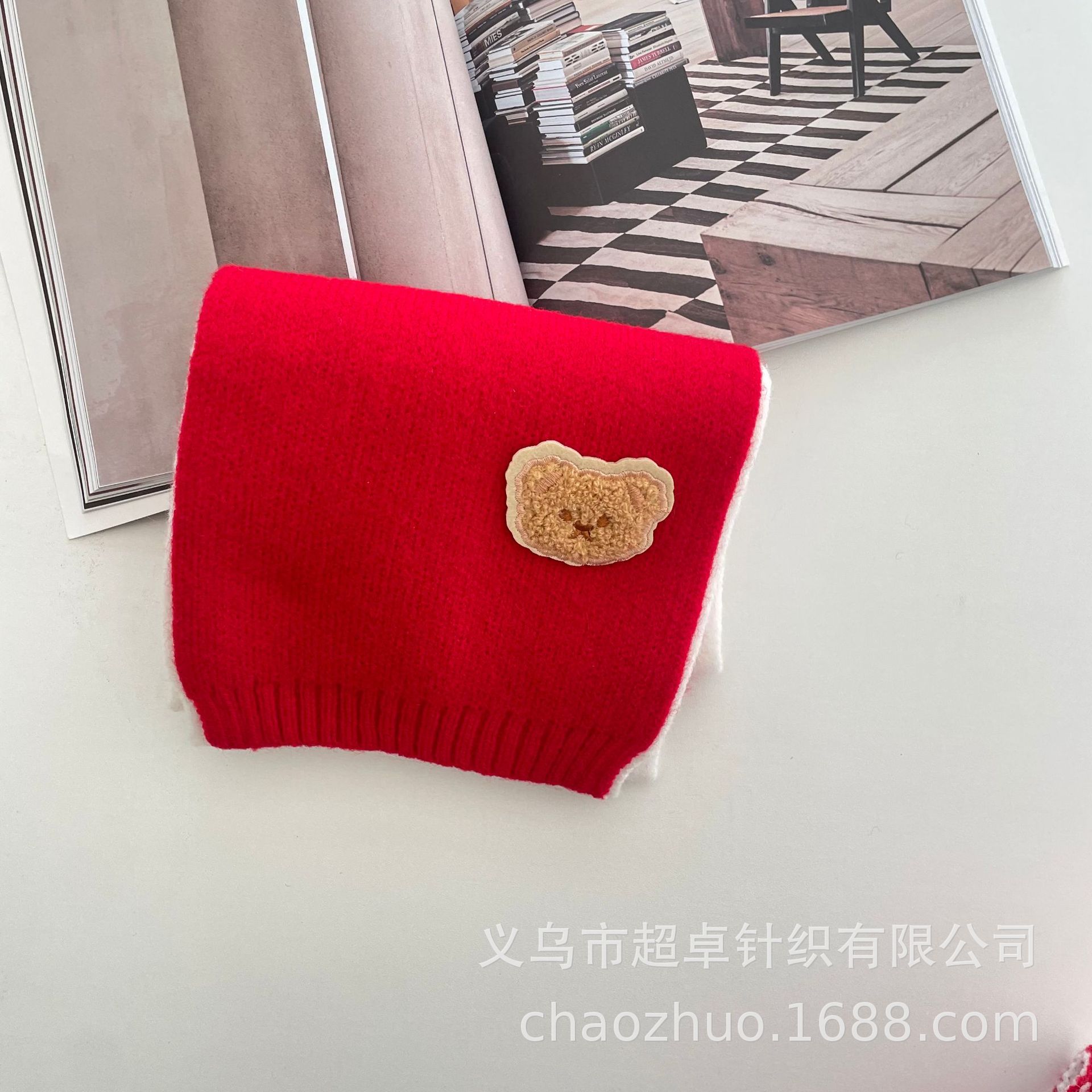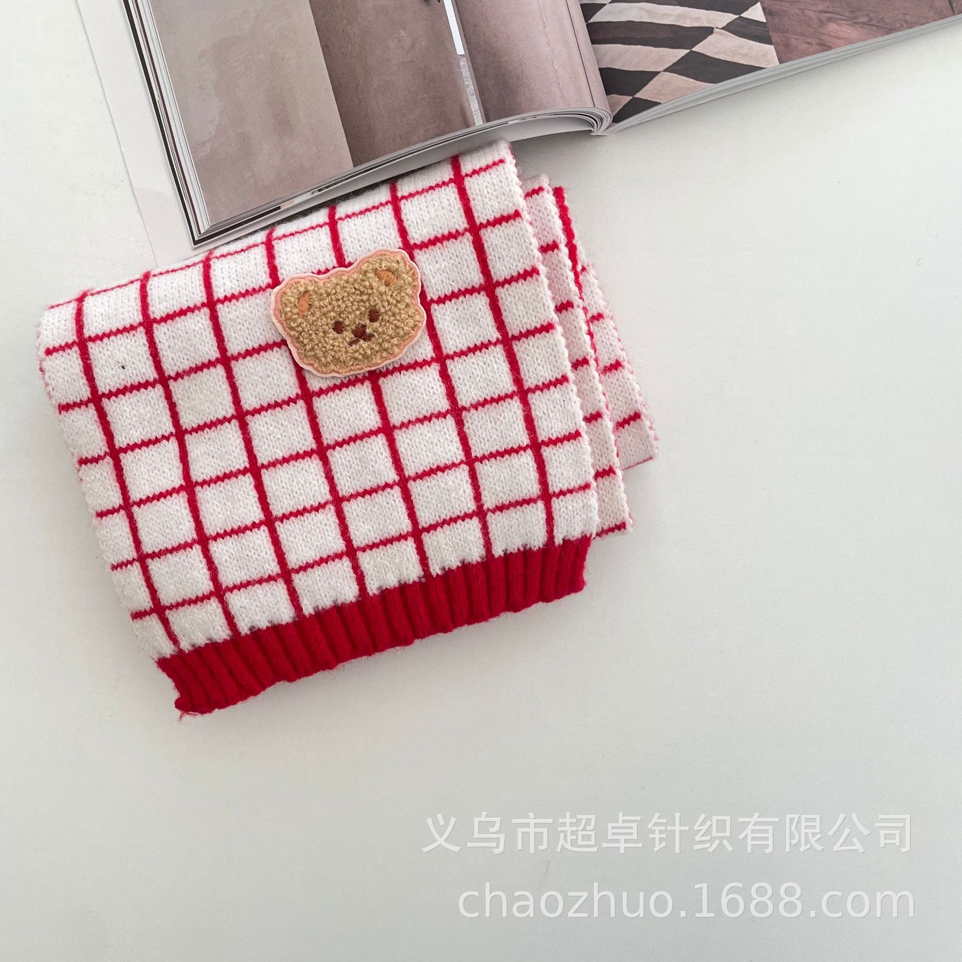 新年红复古拼色麻花针织围巾