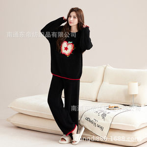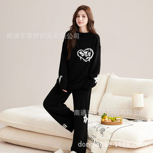 [깨진 코드 복지] 가을과 겨울 반 벨벳 잠옷 숙녀 홈 의류 깨진 코드 초 죽이기 부드러운 세트