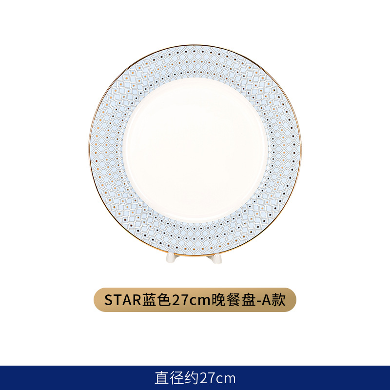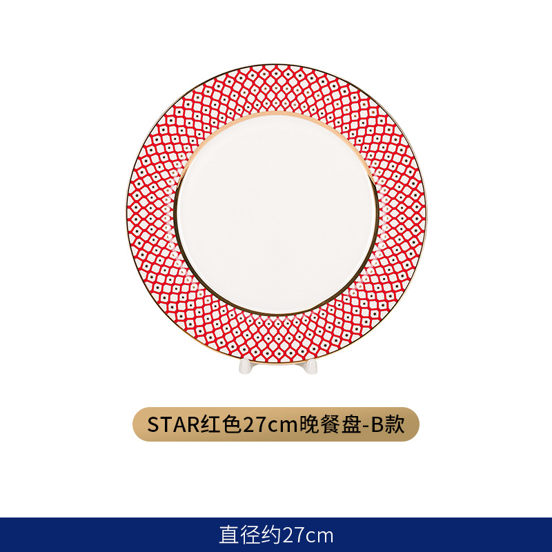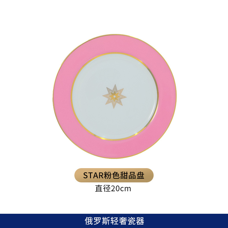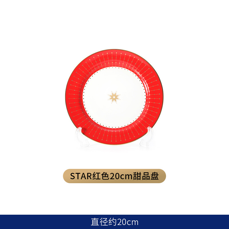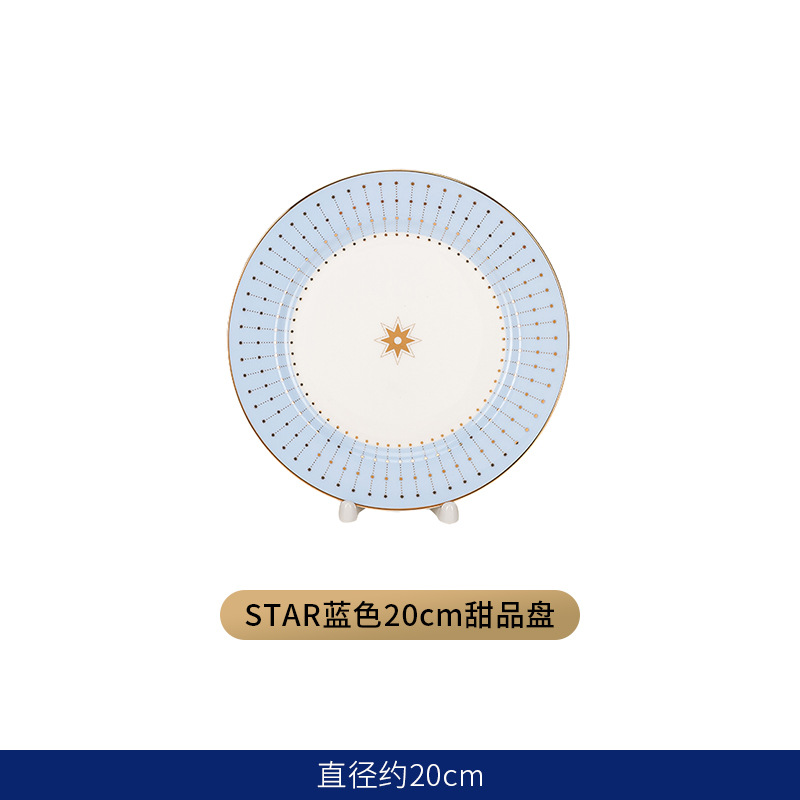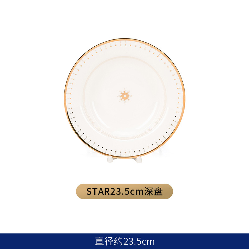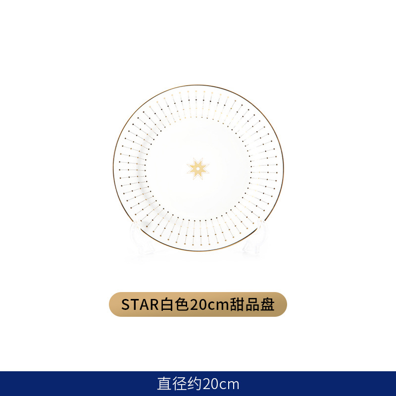 유럽식 서양 음식 접시 세라믹 호텔 레스토랑 스테이크 디너 접시 금색 별 아침 식사 디저트 플랫 플레이트 모델 룸 플레이팅스토어 가기