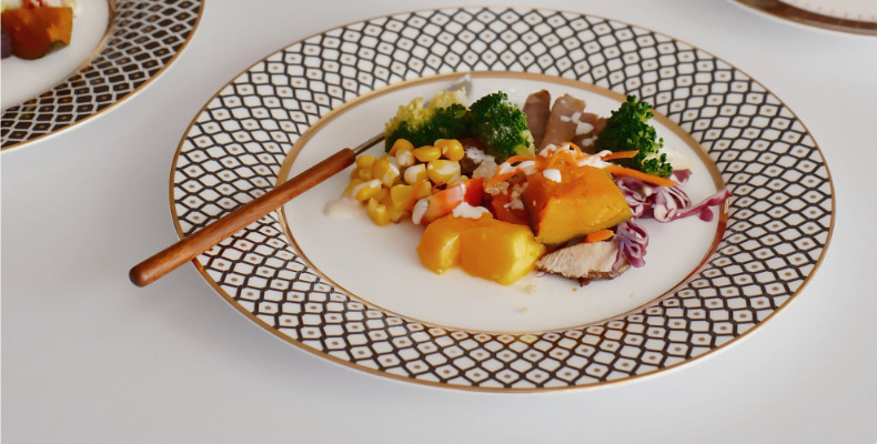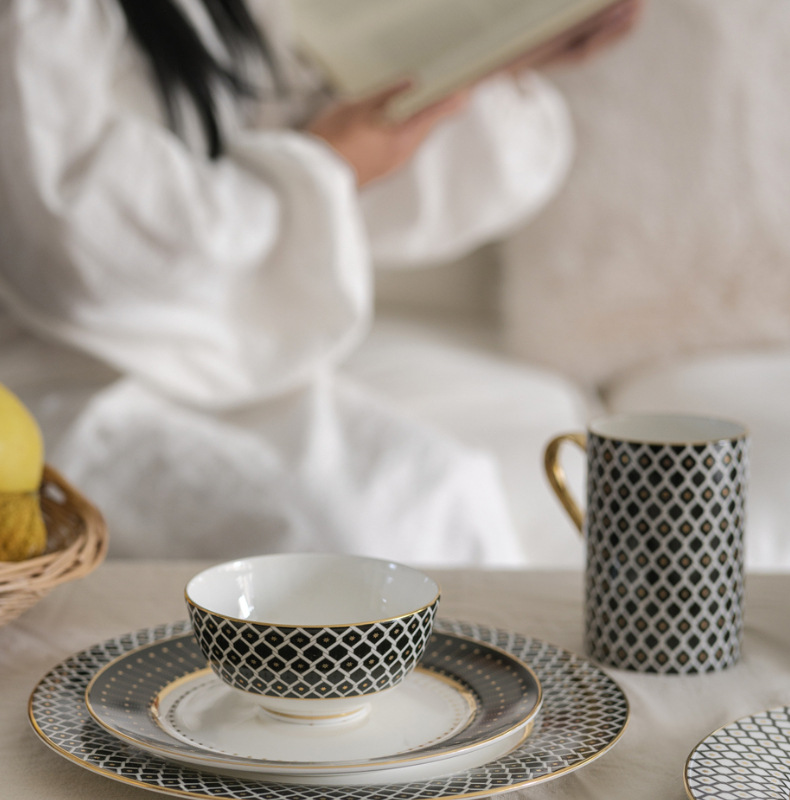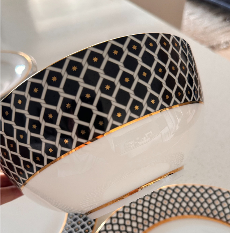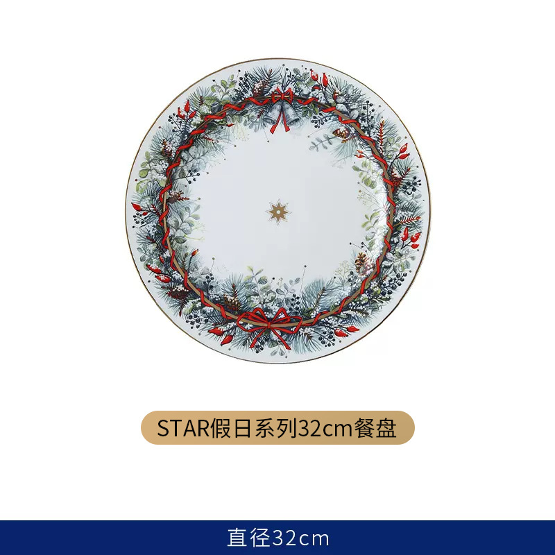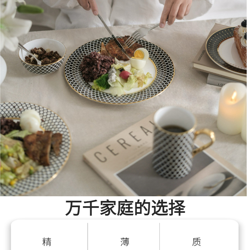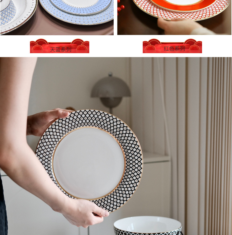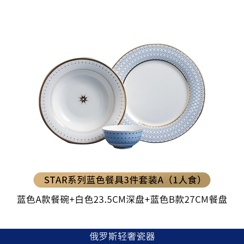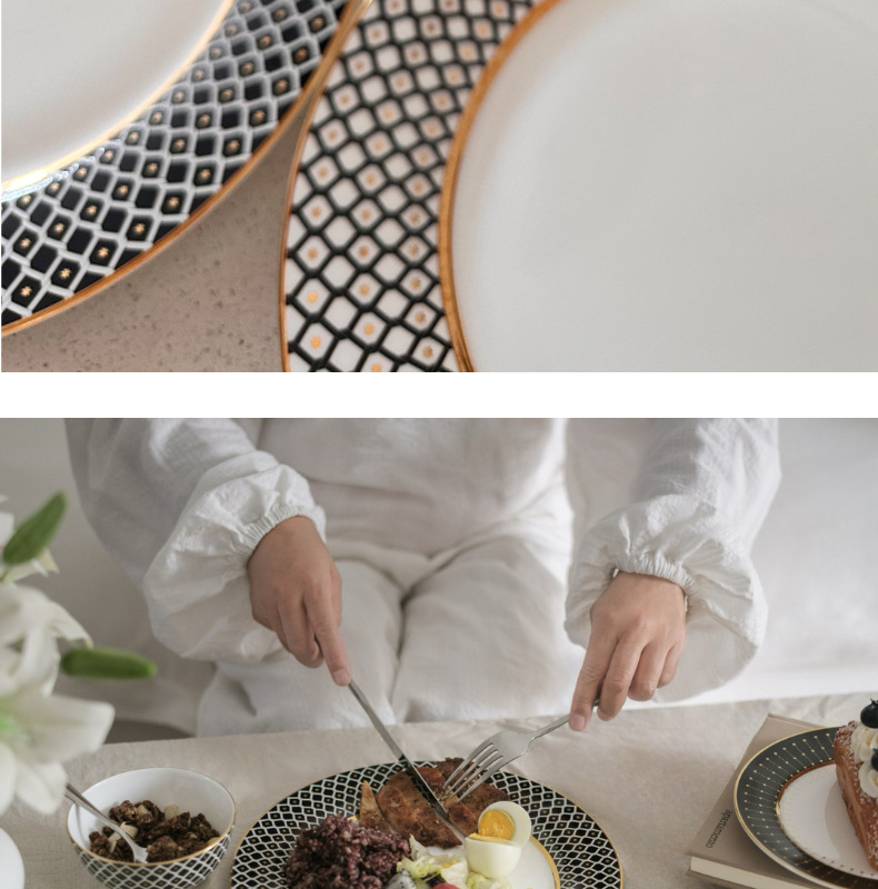 유럽식 서양 음식 접시 세라믹 호텔 레스토랑 스테이크 디너 접시 금색 별 아침 식사 디저트 플랫 플레이트 모델 룸 플레이팅스토어 가기