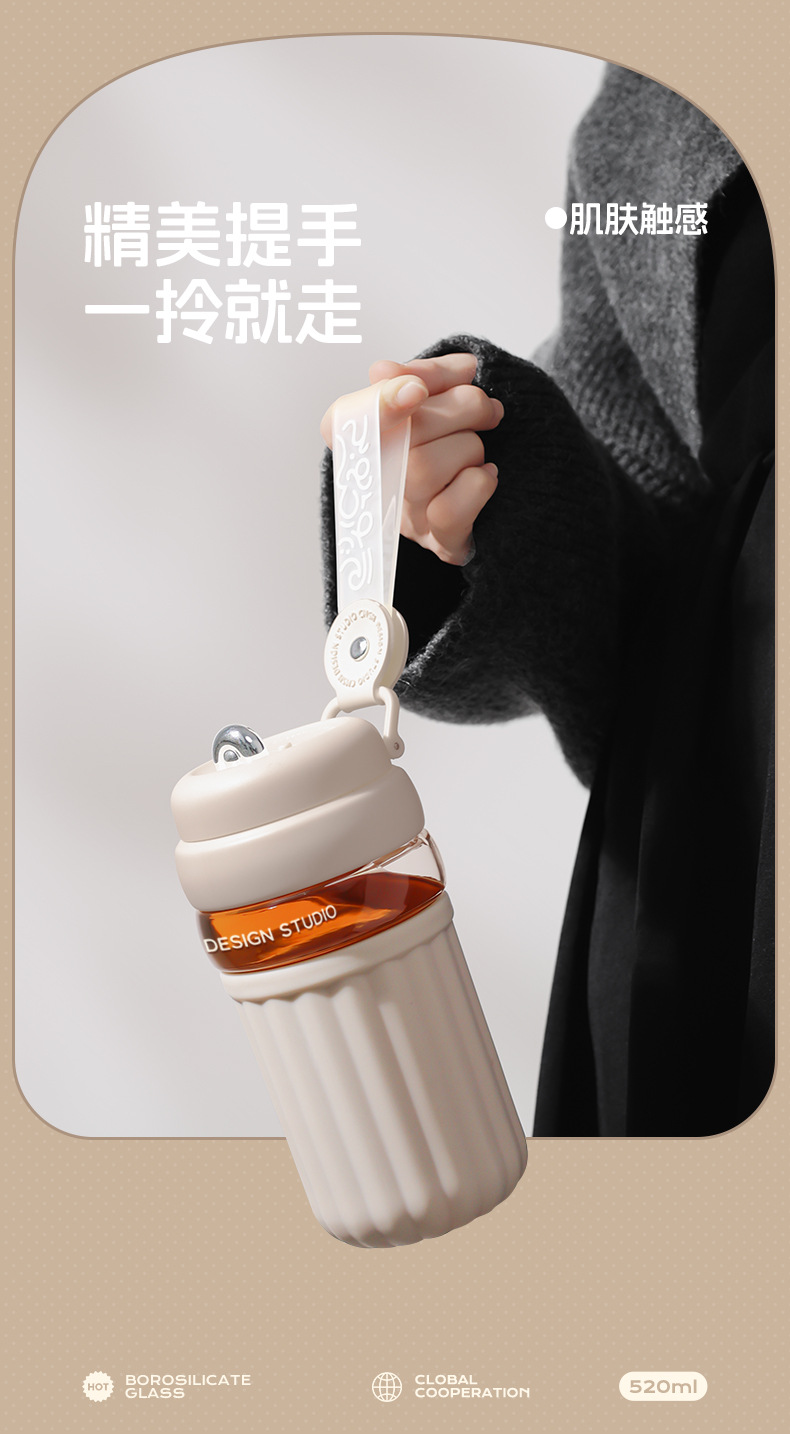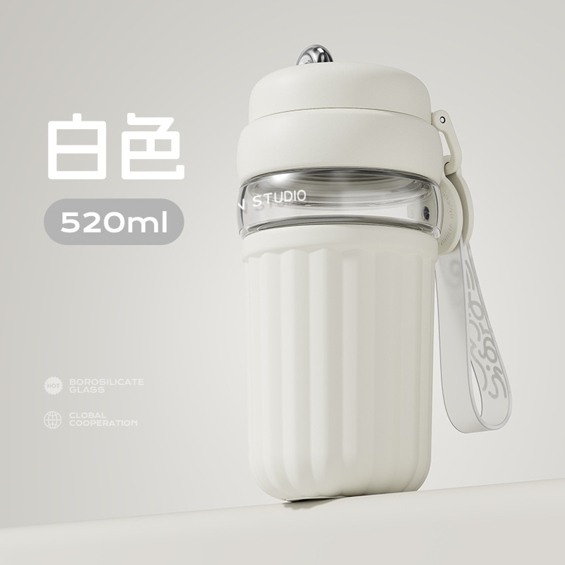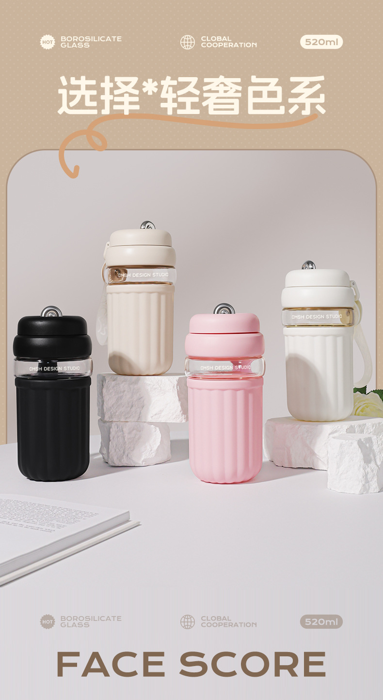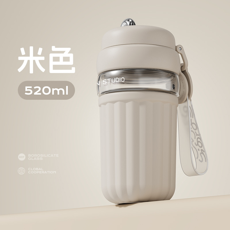 간단한 유리 직접 음료 컵 소녀의 높은 가치 커피 컵 고온 저항 반주 차 구획이있는 휴대용 사무실 차 컵스토어 가기