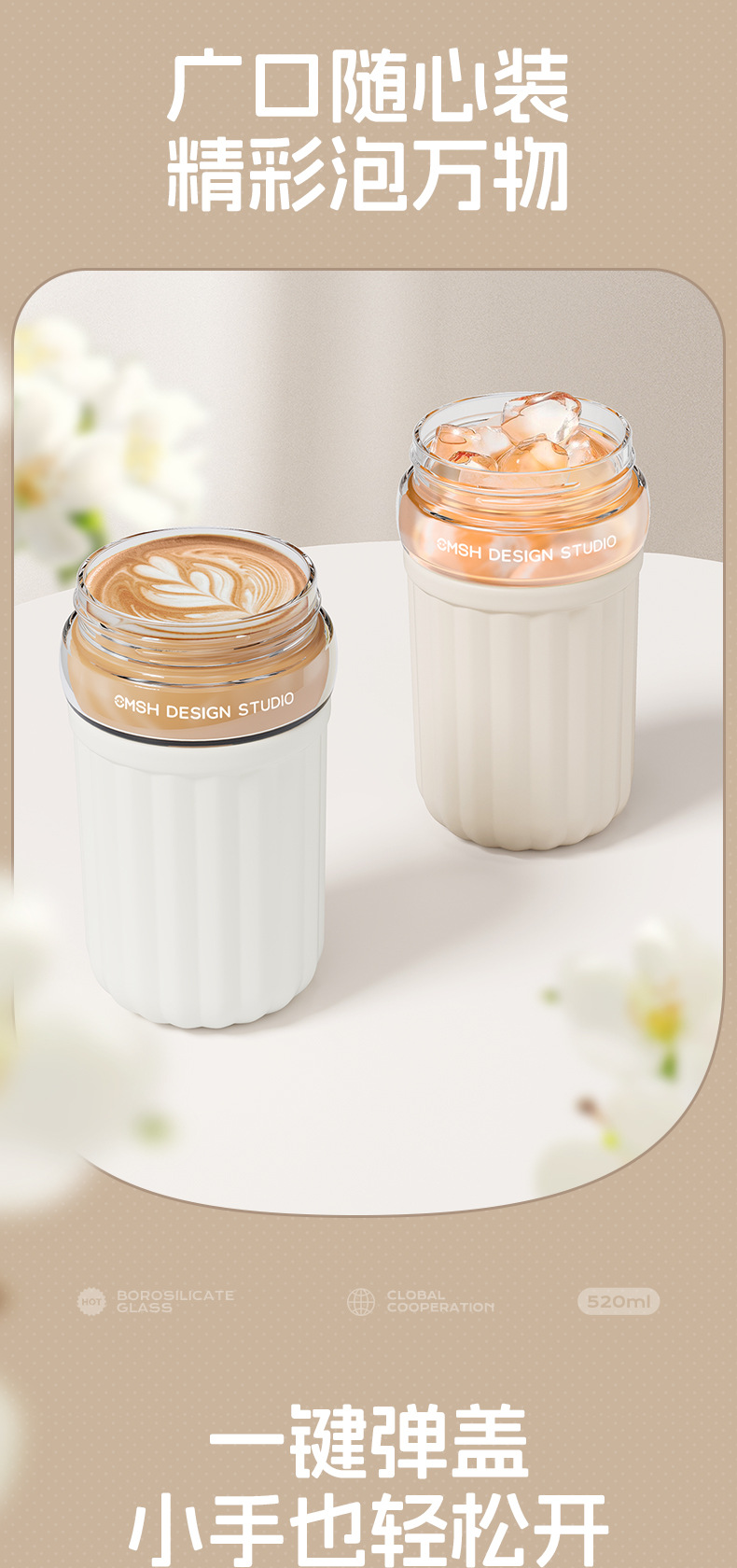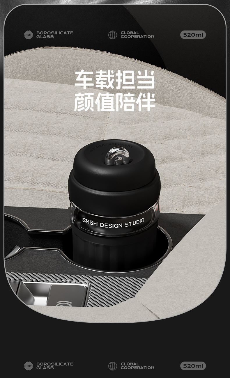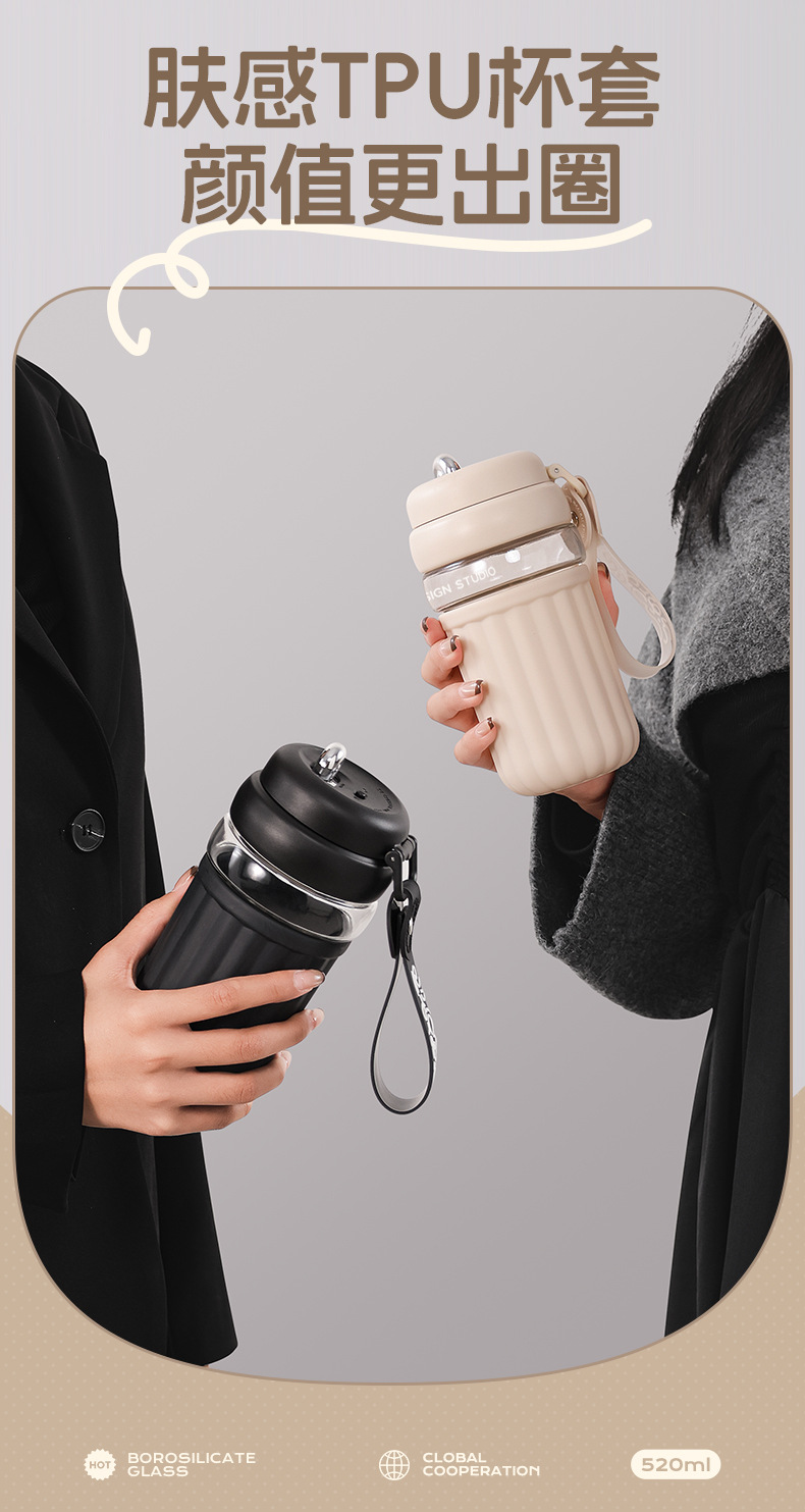 간단한 유리 직접 음료 컵 소녀의 높은 가치 커피 컵 고온 저항 반주 차 구획이있는 휴대용 사무실 차 컵스토어 가기