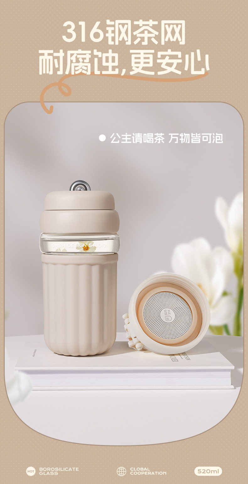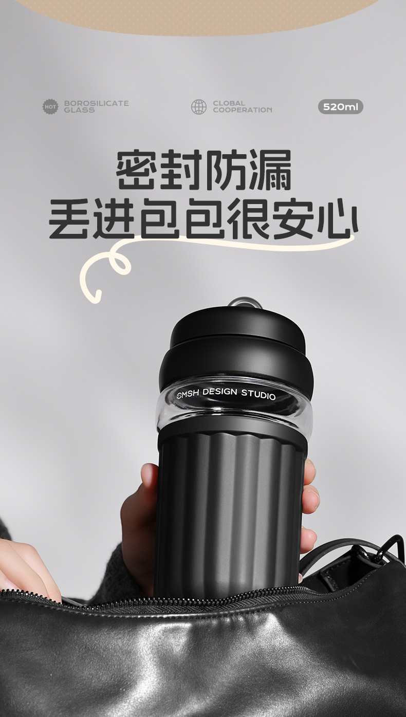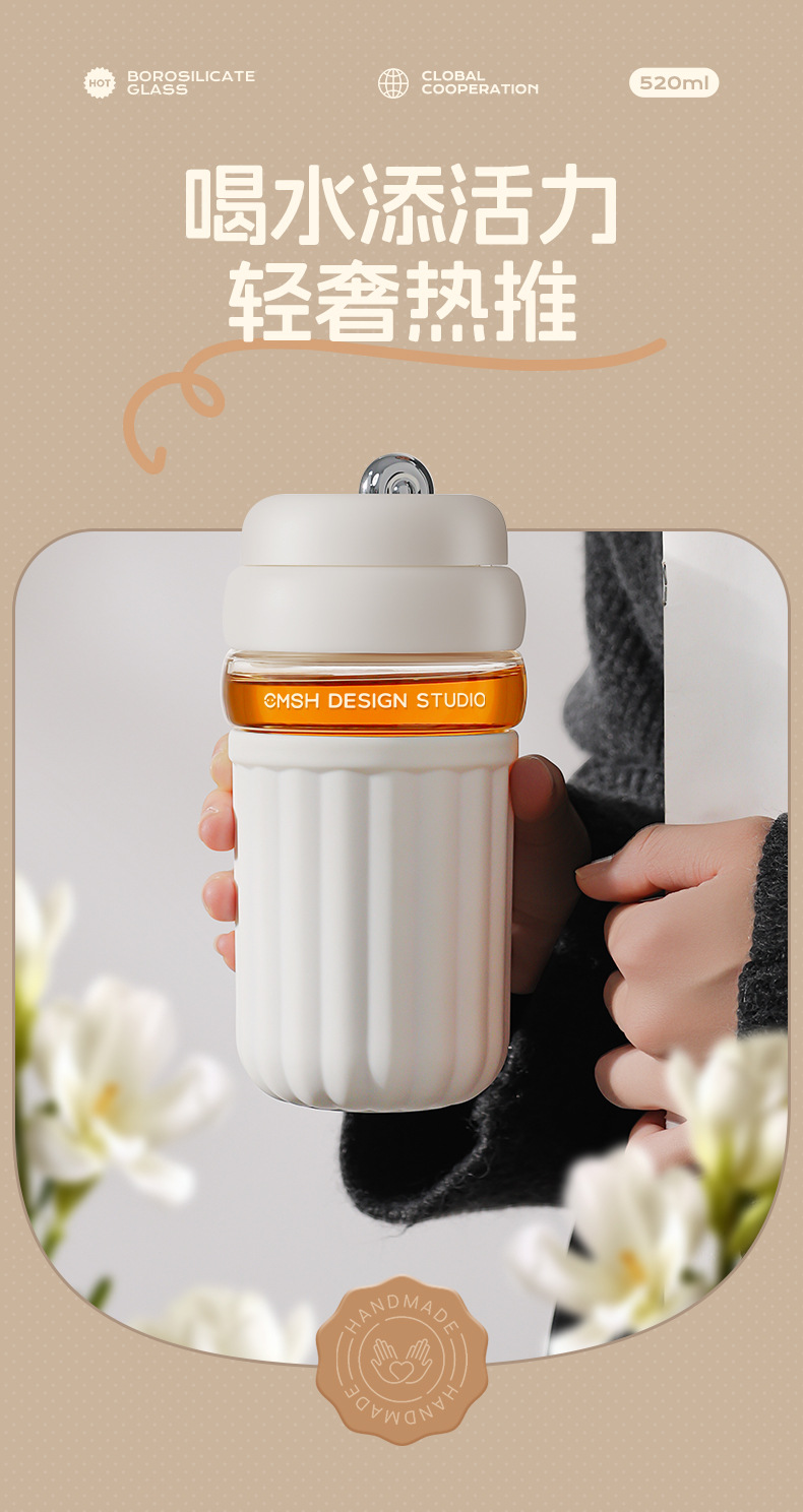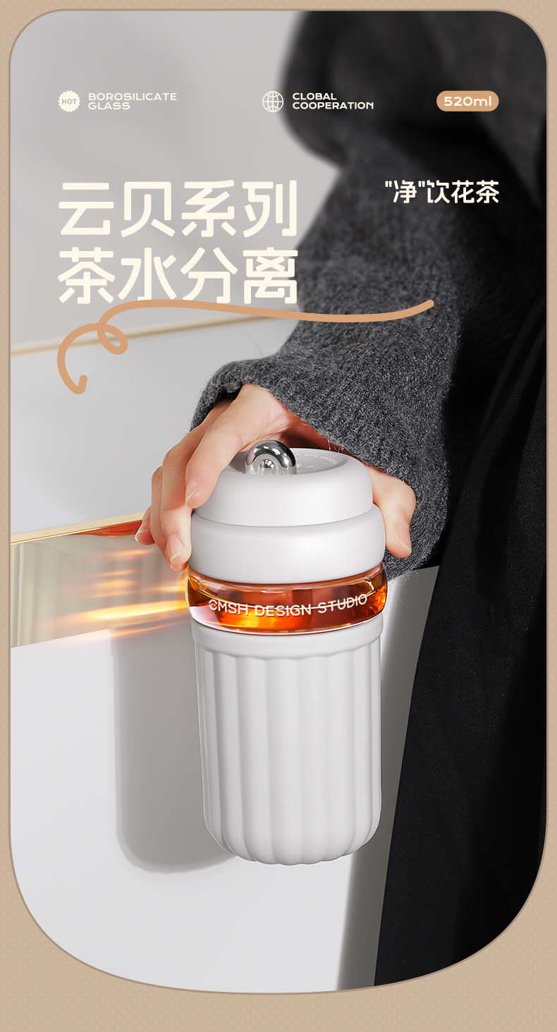 간단한 유리 직접 음료 컵 소녀의 높은 가치 커피 컵 고온 저항 반주 차 구획이있는 휴대용 사무실 차 컵