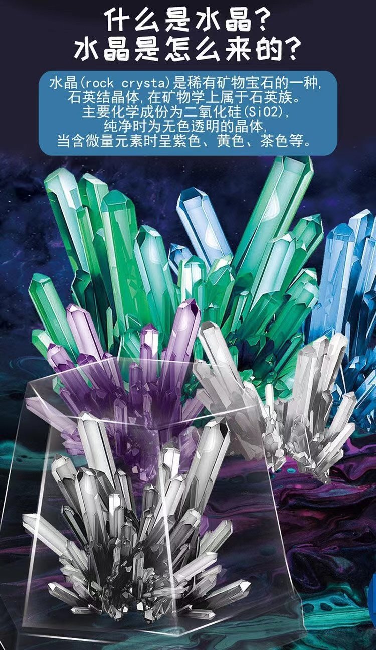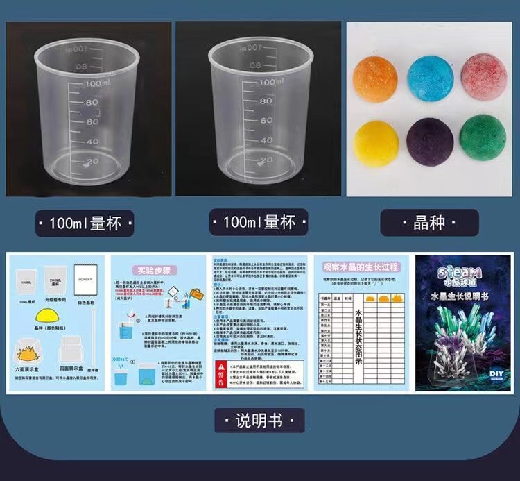 单颗水晶生长出来的尺寸受环境气候温度影响长出来的尺寸大概是直径6-8厘米,彩盒尺寸:8*7.5*11CM,毛/净重22.8/20.6KG箱规59*51*63,一箱240盒。